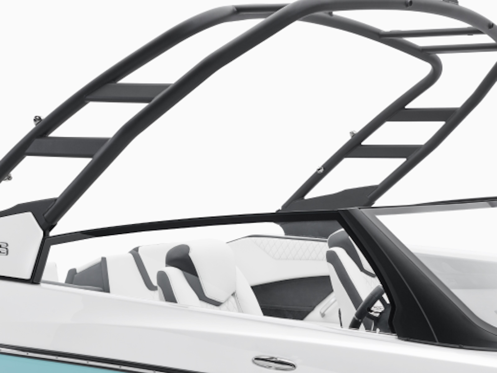 - This forward-swept aluminum tower combines sleek styling with functionality. Its Bimini top provides both a striking appearance and ample shade.