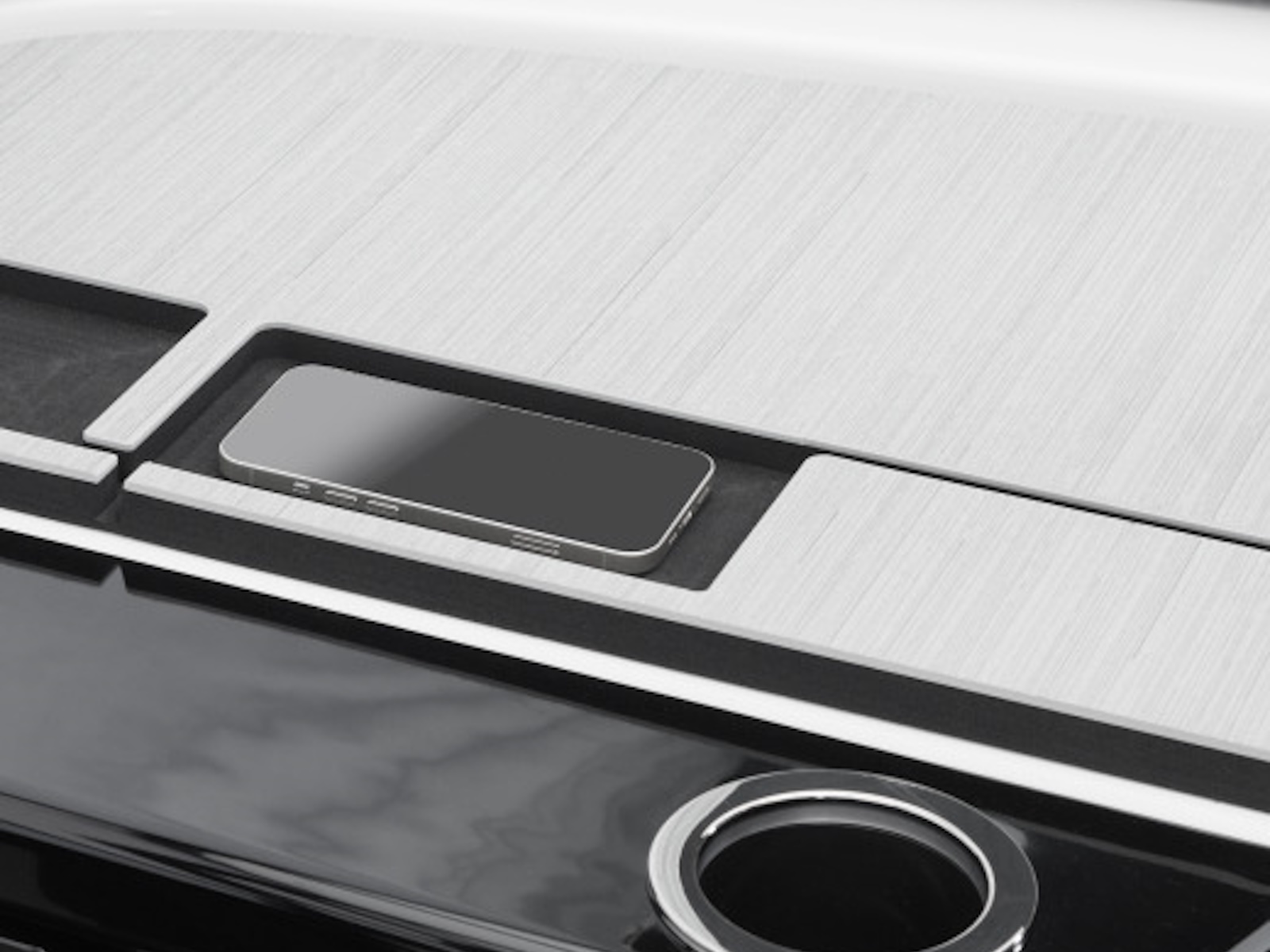 - Comes with a wireless charging smartphone holder at the helm and a portside charging pad, ensuring your devices stay charged.