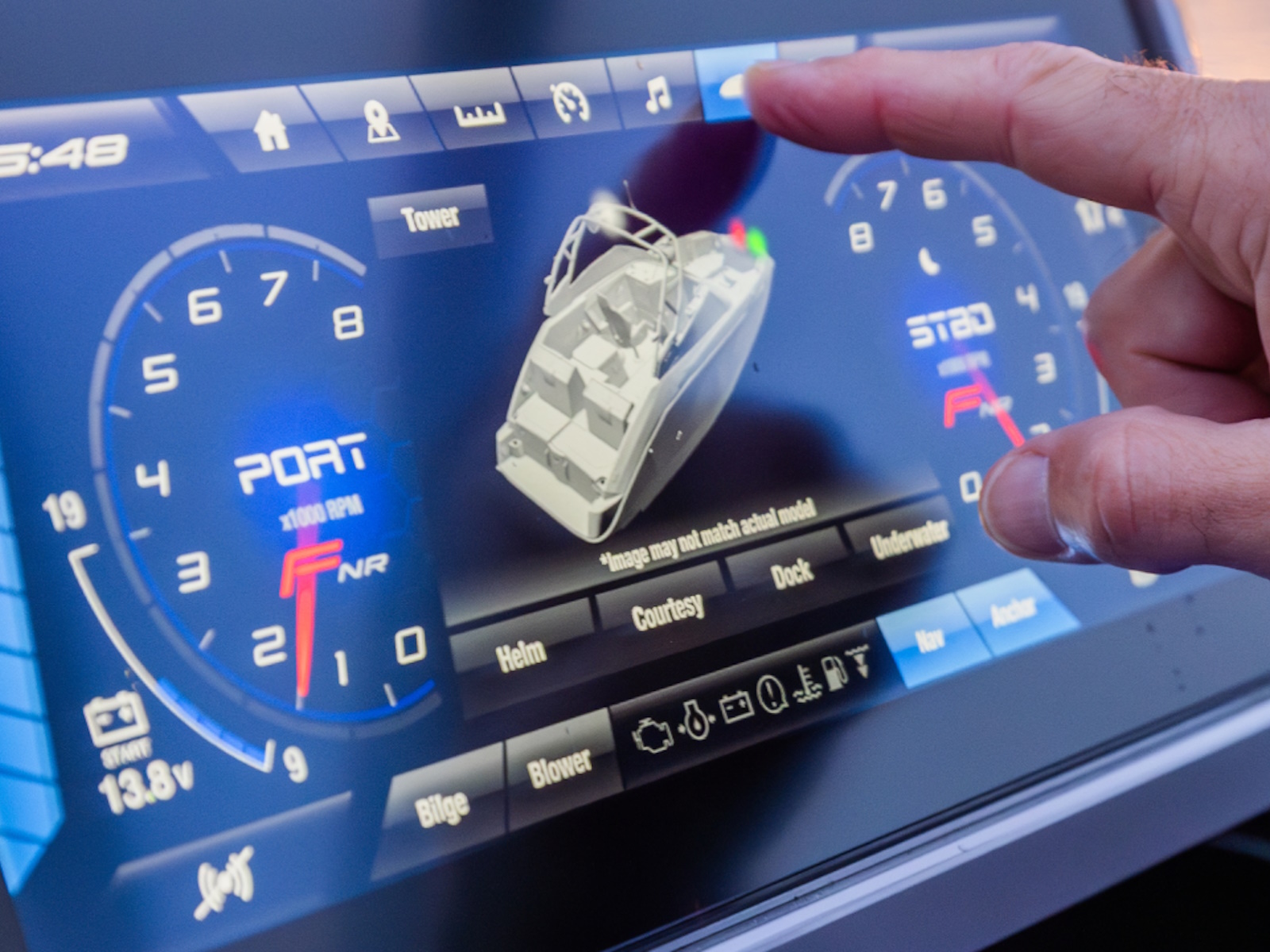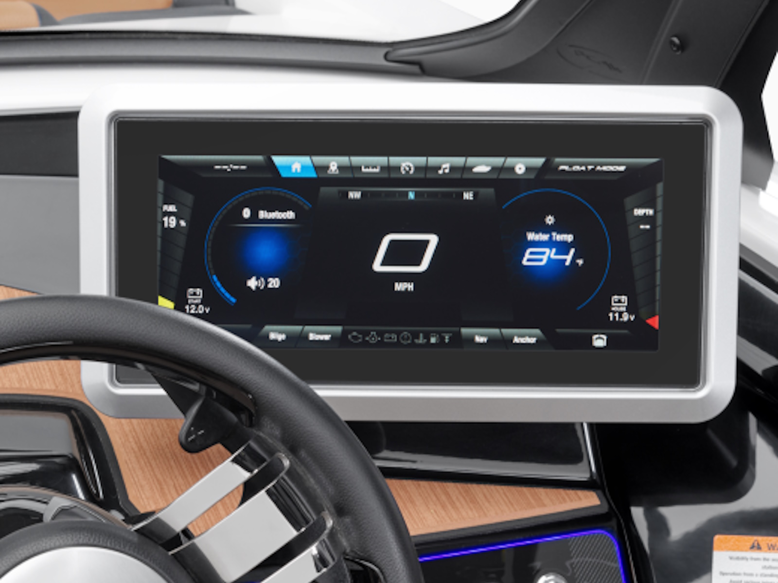 - Features a vibrant 12.3-inch multi-color Connext touchscreen, centralizing entertainment functions, GPS mapping, and vital boat system data.