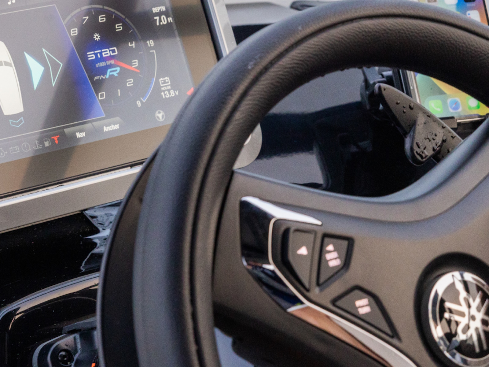 DRiVE X®, the next evolution of Yamaha's DRiVE technology, revolutionizes boat maneuverability. With this advanced system, you can move your boat forward and backward, shift laterally, rotate on an axis, or hold the boat steady against the dock, all while keeping your hands on the steering wheel.