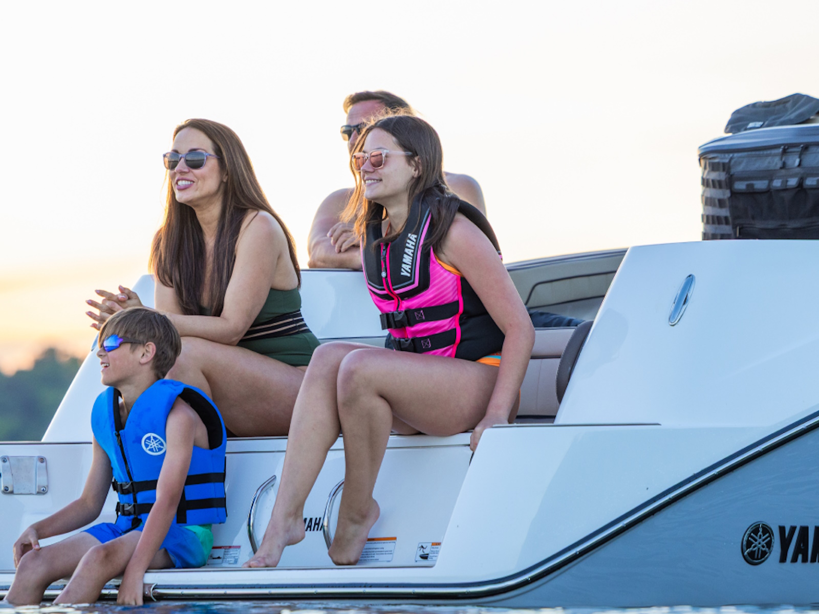 Yamaha's signature swim platform features beverage mounts, plush backrest cushions, and convenient access to the patented pump cleanout ports to easily clear debris.