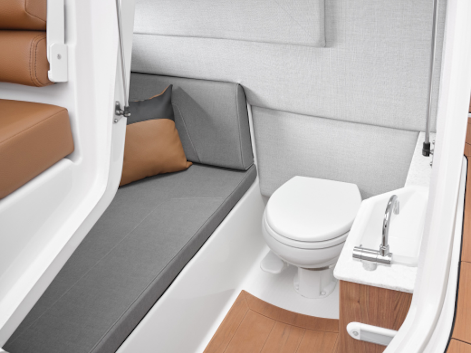 - Roomy, comfortable, and well-finished, this head compartment is perfect for attending to personal needs on the water, or use for storage.