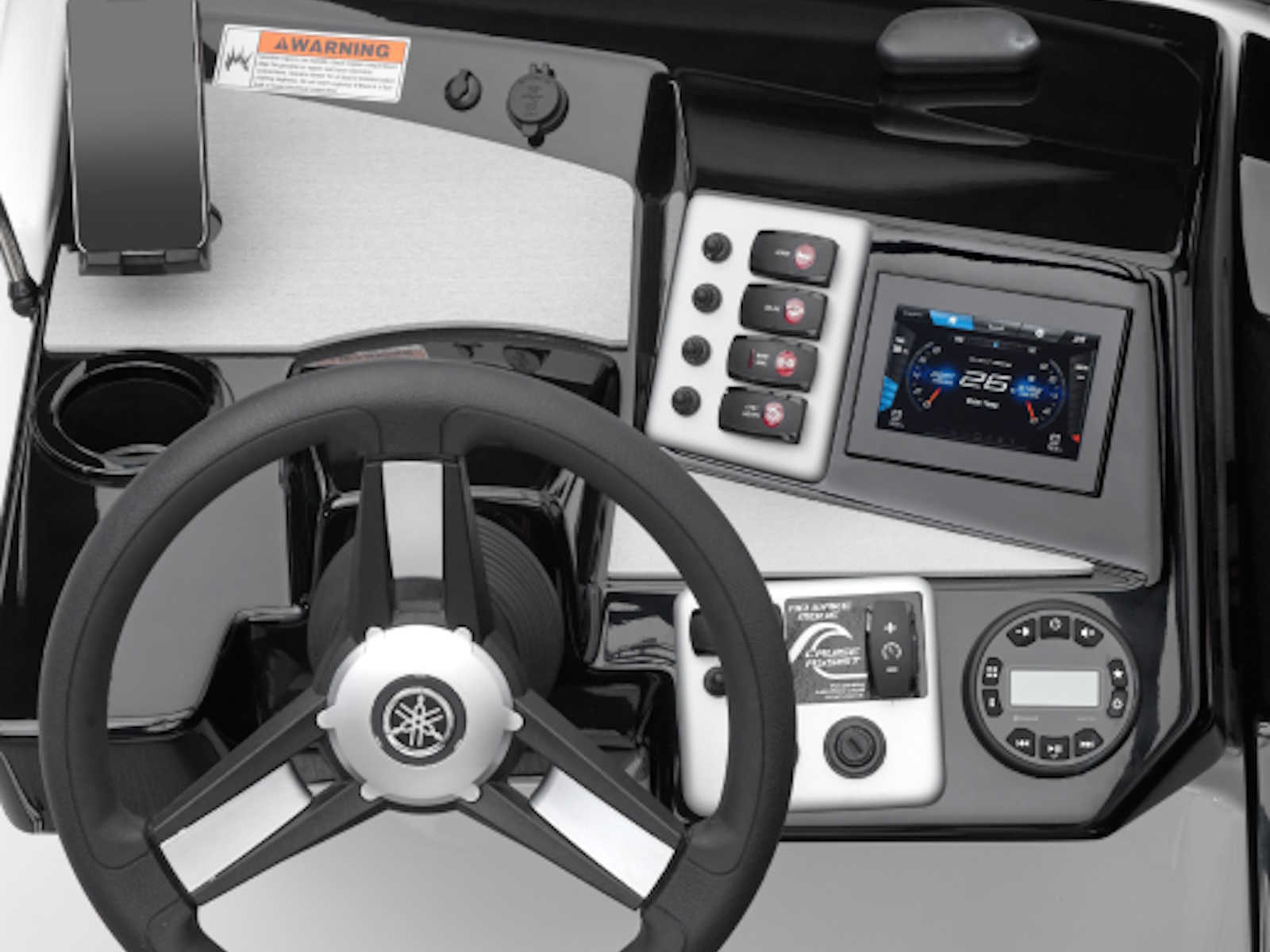 - Features a 5-inch multi-color Connext® touchscreen that serves as the central hub for entertainment functions, GPS mapping, and essential boat system data while underway.
