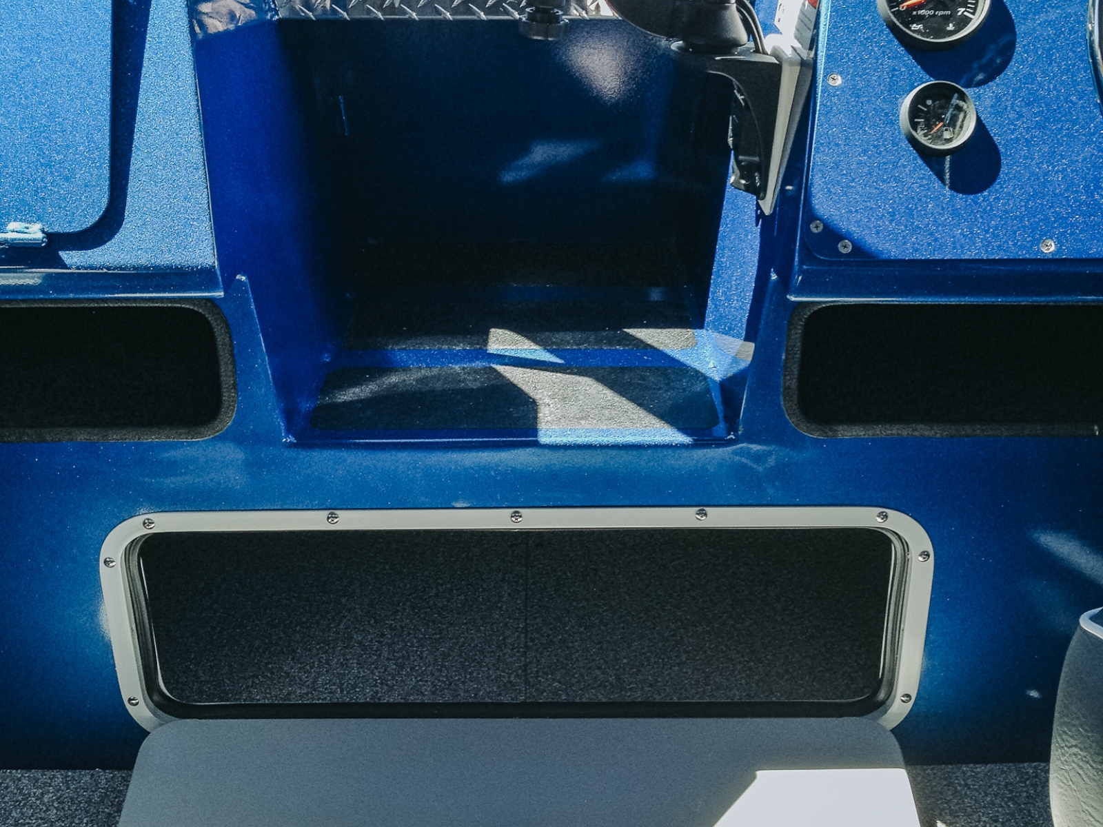 - Large, oversized transom fish box
