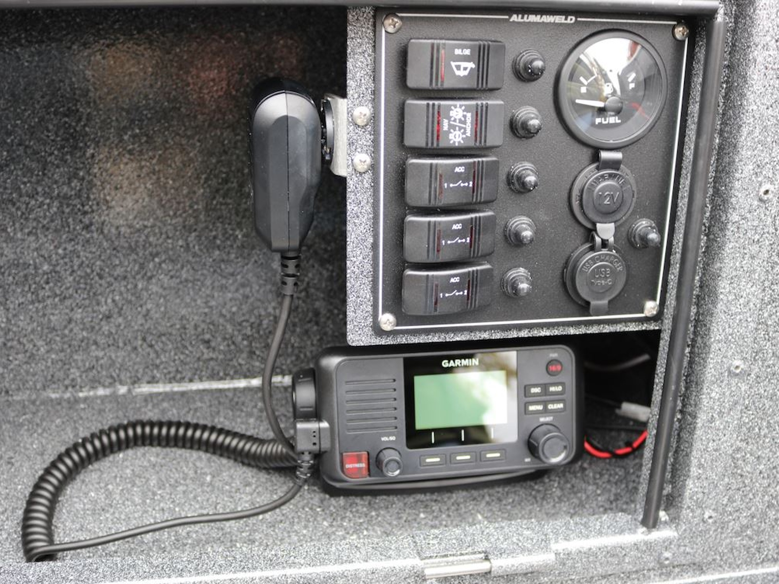 • Five switch panel with panel fuses, dual USB port, and 12-volt outlet