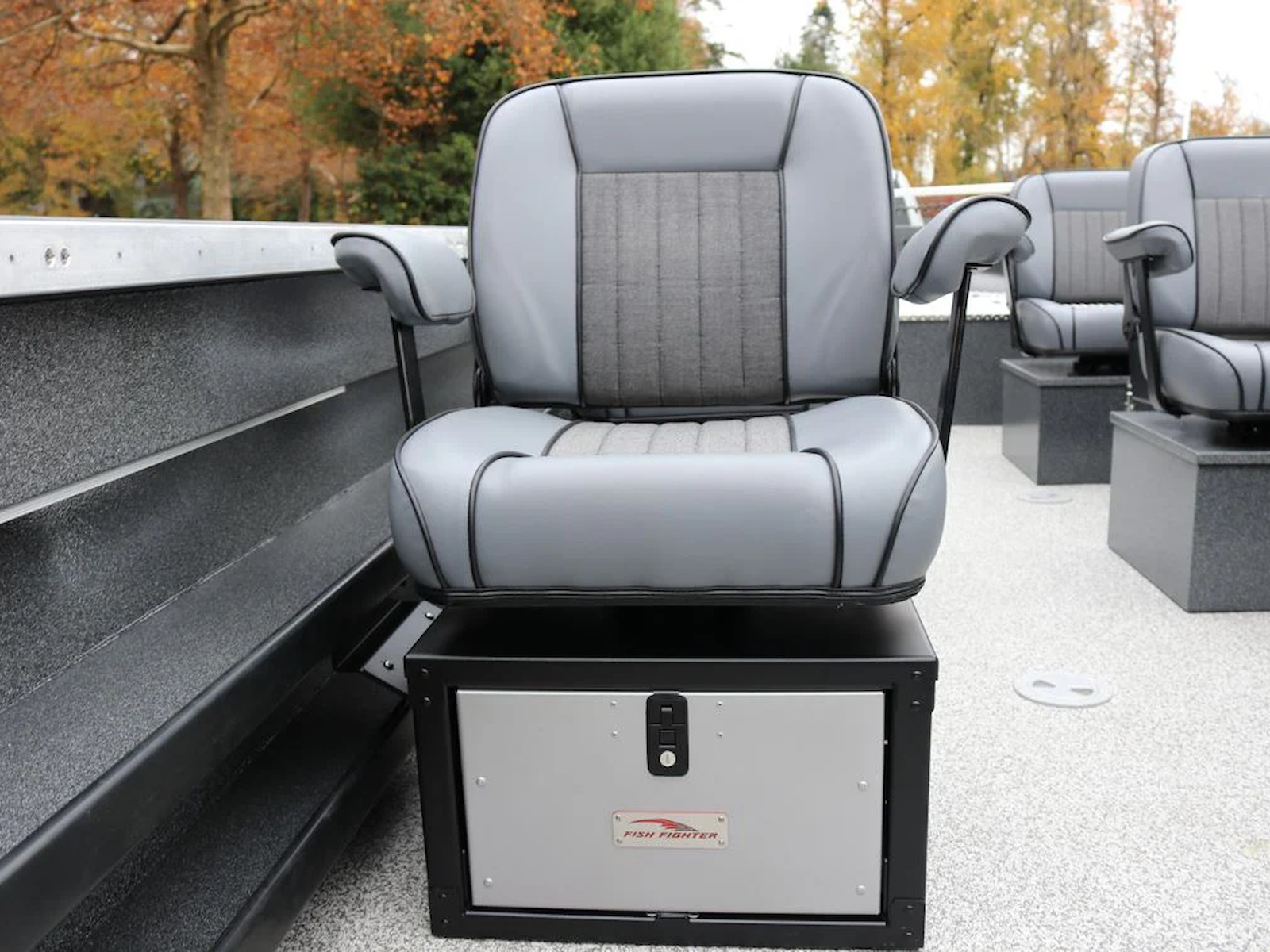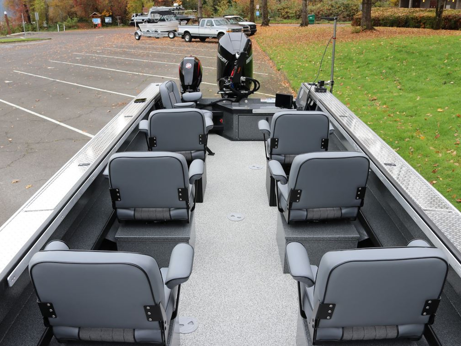 • Four deluxe comfort seats on adjustable aluminum storage boxes