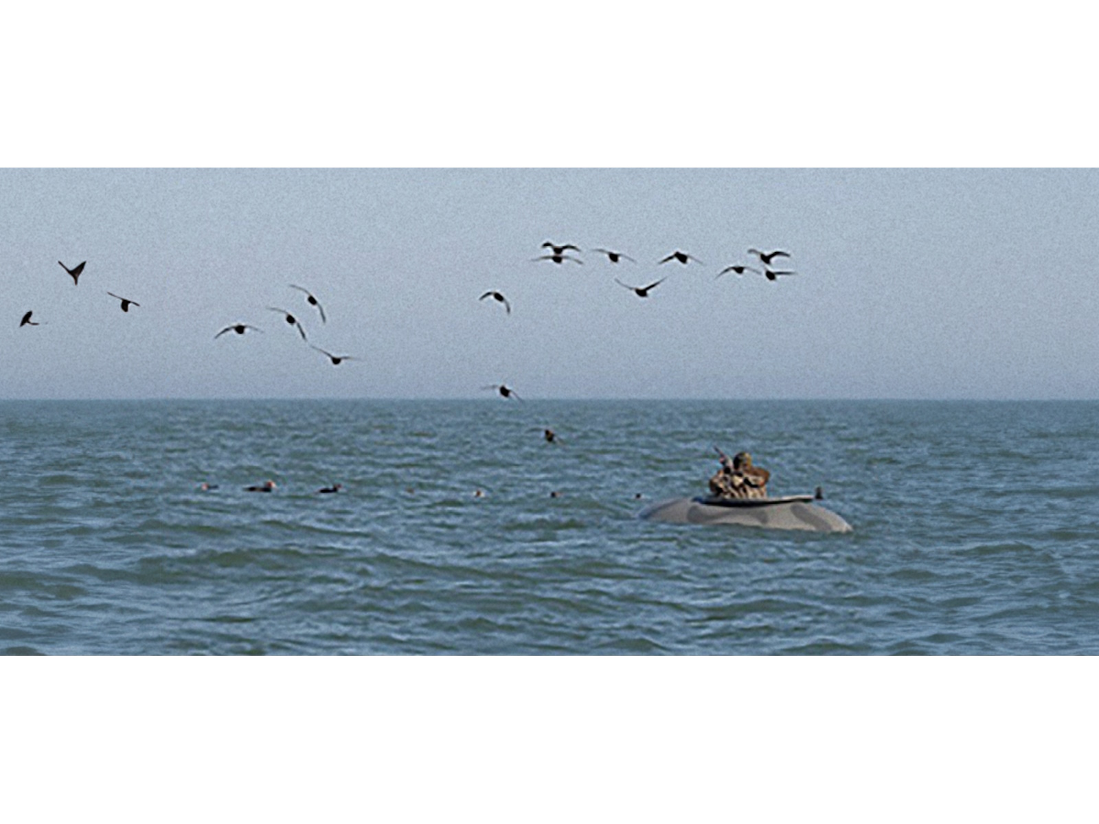 With it’s 56” beam and exclusive “suction cup” hull design, you can be assured of a stable shooting platform, in all kinds of conditions. The boat comes with a stainless steel bow eye through bolted at each end for anchoring, and a molded-in gun slot in the deck. It has a molded fiberglass back rest, spray shield, and ample foot room for maximum comfort. There are shelves on each side of you for shells, radio, lunch, and whatever else you may need.