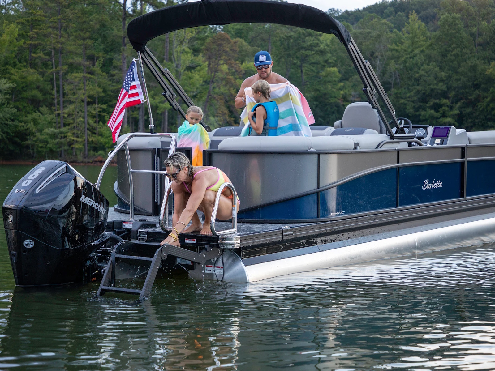 Do you have a large crew that demands lots of seating? The quad-lounge is the layout for those who want to spread out and relax on the ultra-comfy Barletta chaise lounges. The way the furniture wraps around the perimeter of the boat is also great for keeping curious kiddos and pets inside the boat while underway.