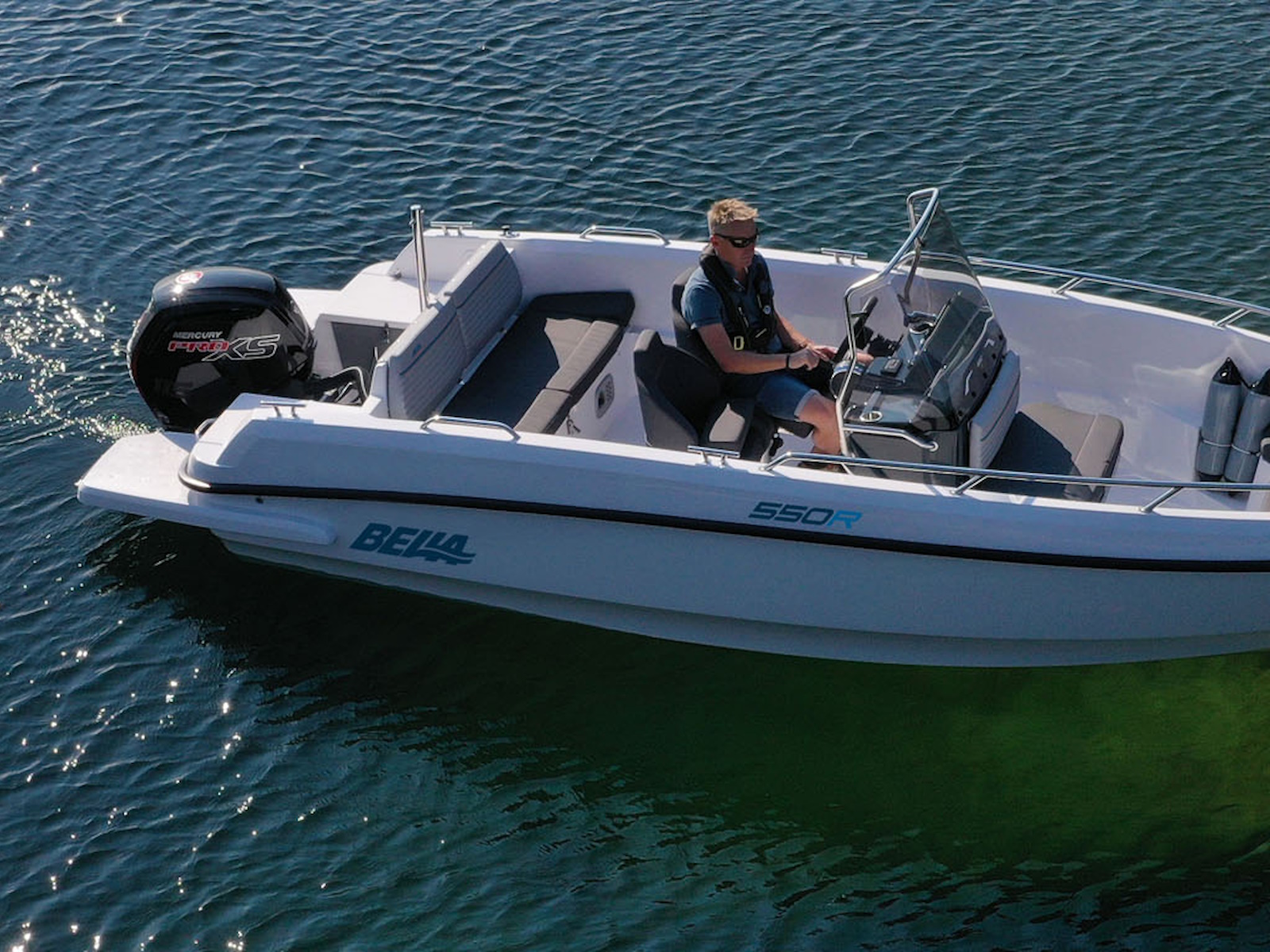 Especially taking the size class into account, Bella 550 R is downright excellent to drive. However, its true capabilities lie in versatile leisure opportunities. The practical set of standard equipment provides great opportunities for swimming or fishing trips, while additional equipment further enhance experiences for those into sunbathing, water skiing or longer cruises. The newest Bella fits conveniently into the boat family that has always been known for smart solutions and genuine value for money.