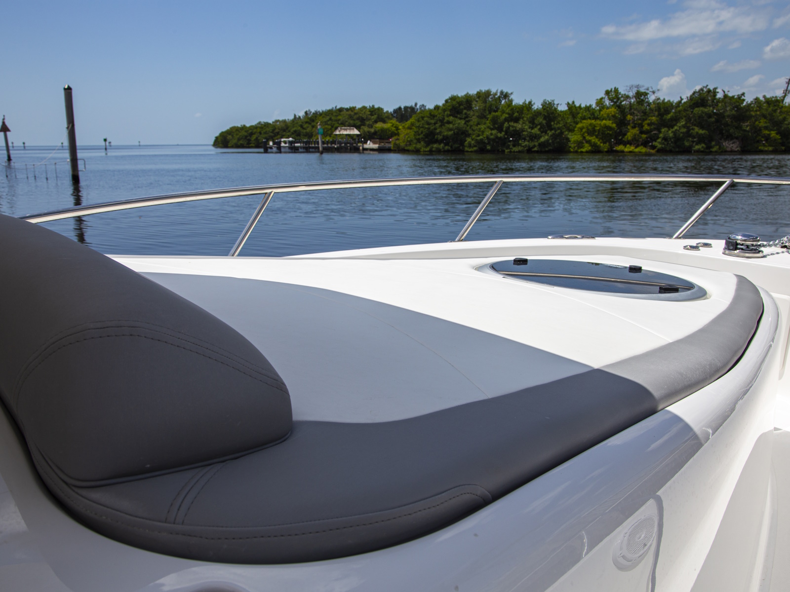 - Sun lounge cushions (walkaround) or customizable bow seating (center console)