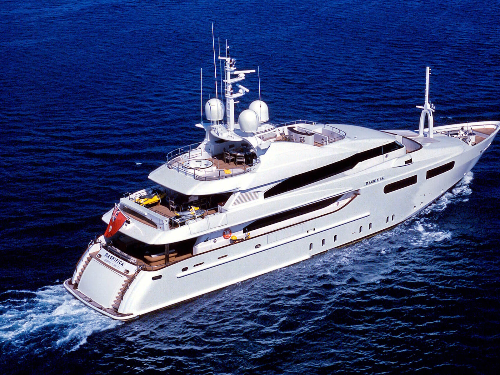 She is a beautiful bespoke vessel with a sharp focus on craftmanship and style. She accommodates 10 guets, offering a full-beam owner stateroom on the main deck, two large vip cabins with king beds, and two twin cabins, all en suite. MAGNIFICA has a bright modern interior and features a large cinema room on her upper deck.