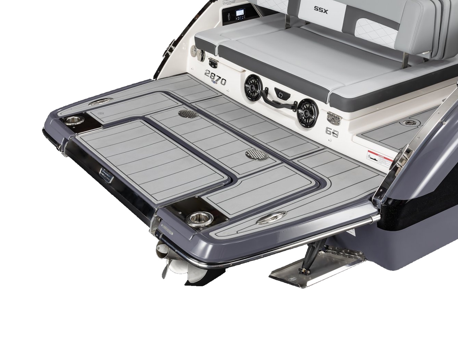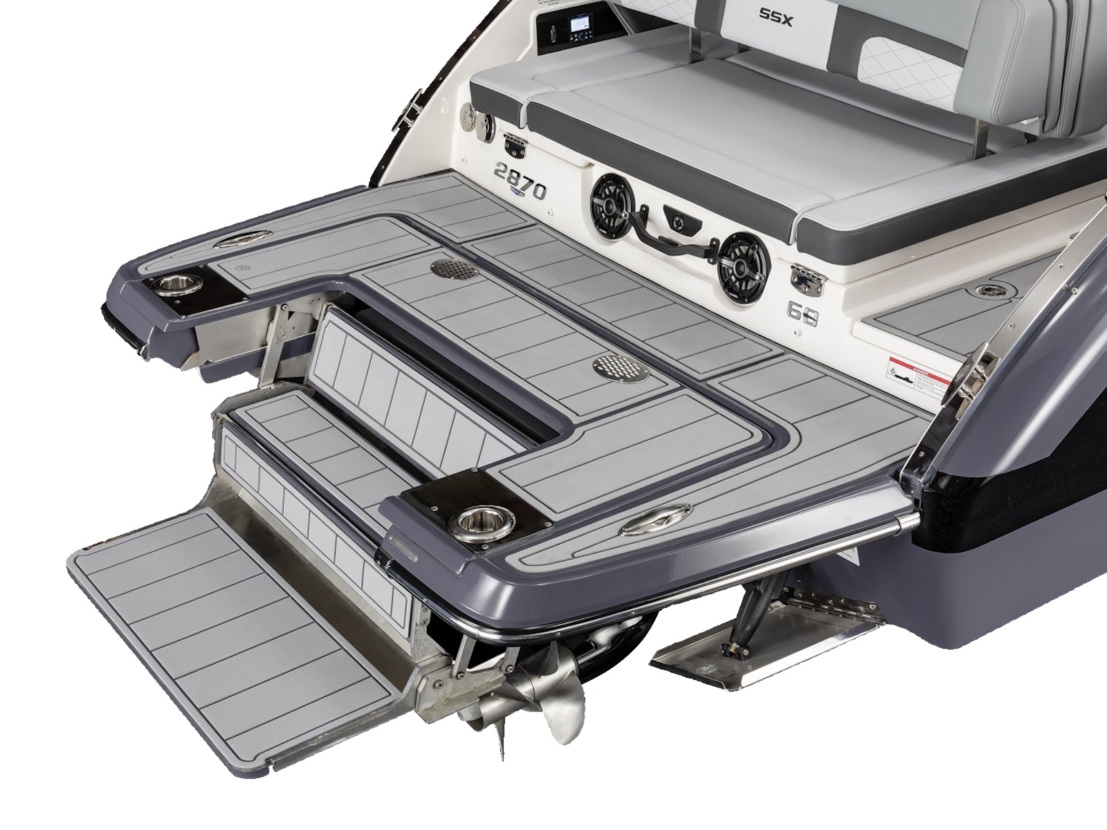- Infinity Power Step® Swim Platform (with SeaDek® Infinity Power Step Mat (Slate or Cayenne (Cayenne requires Black Edition or Cayenne Interior Package)) and Cupholders with Entry Handle