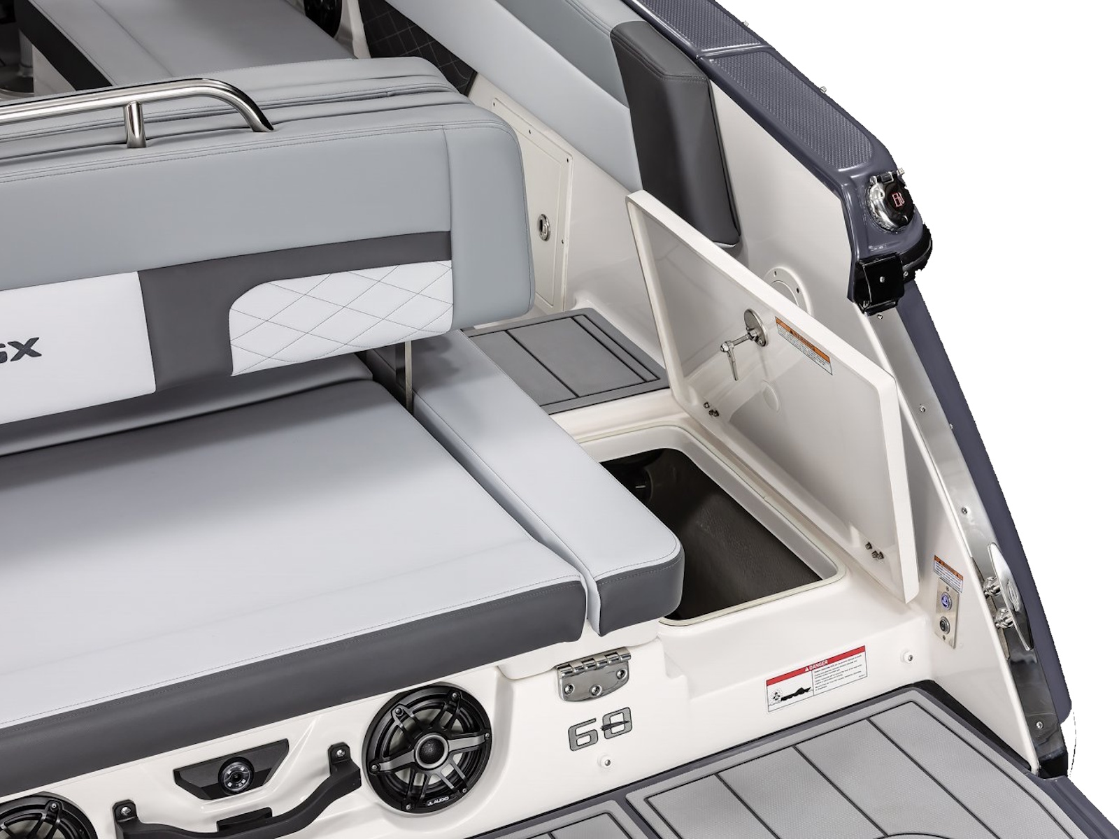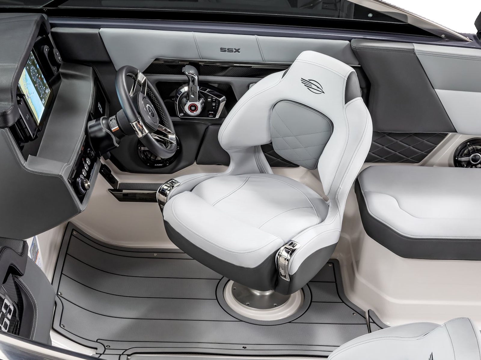 - Storage under STBD Helm with Protective Mat and Trash Receptacle