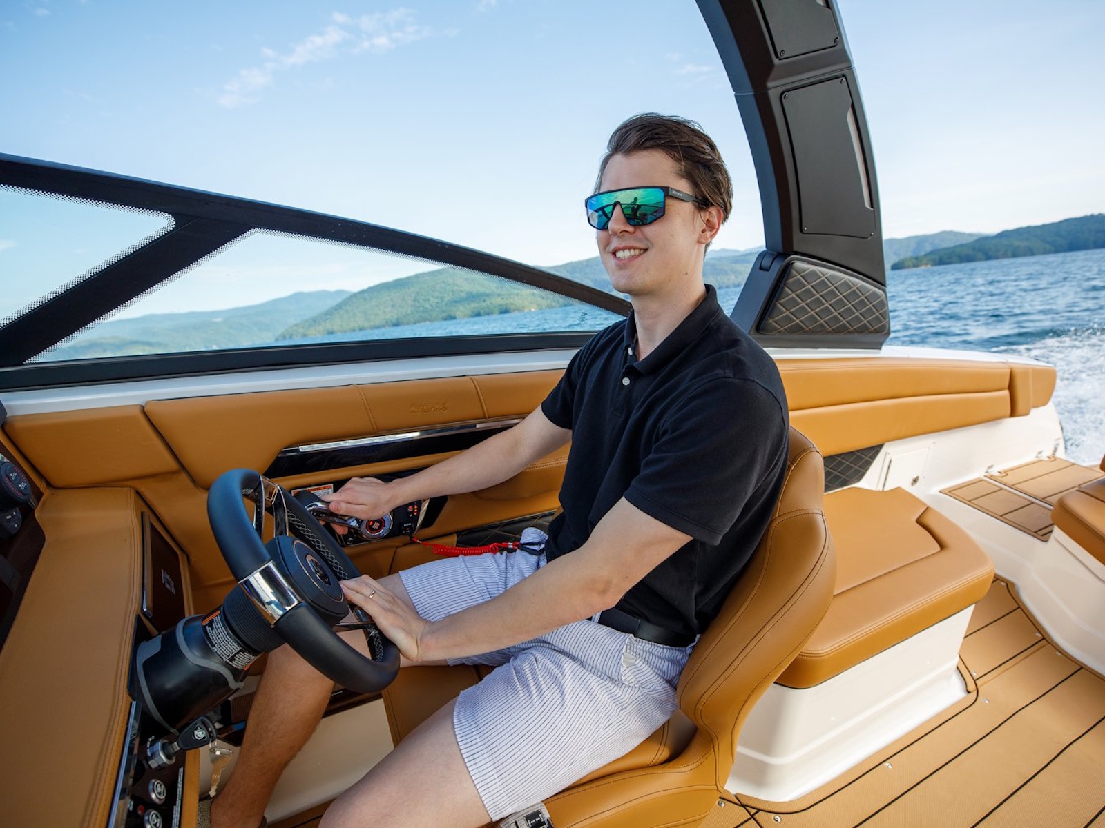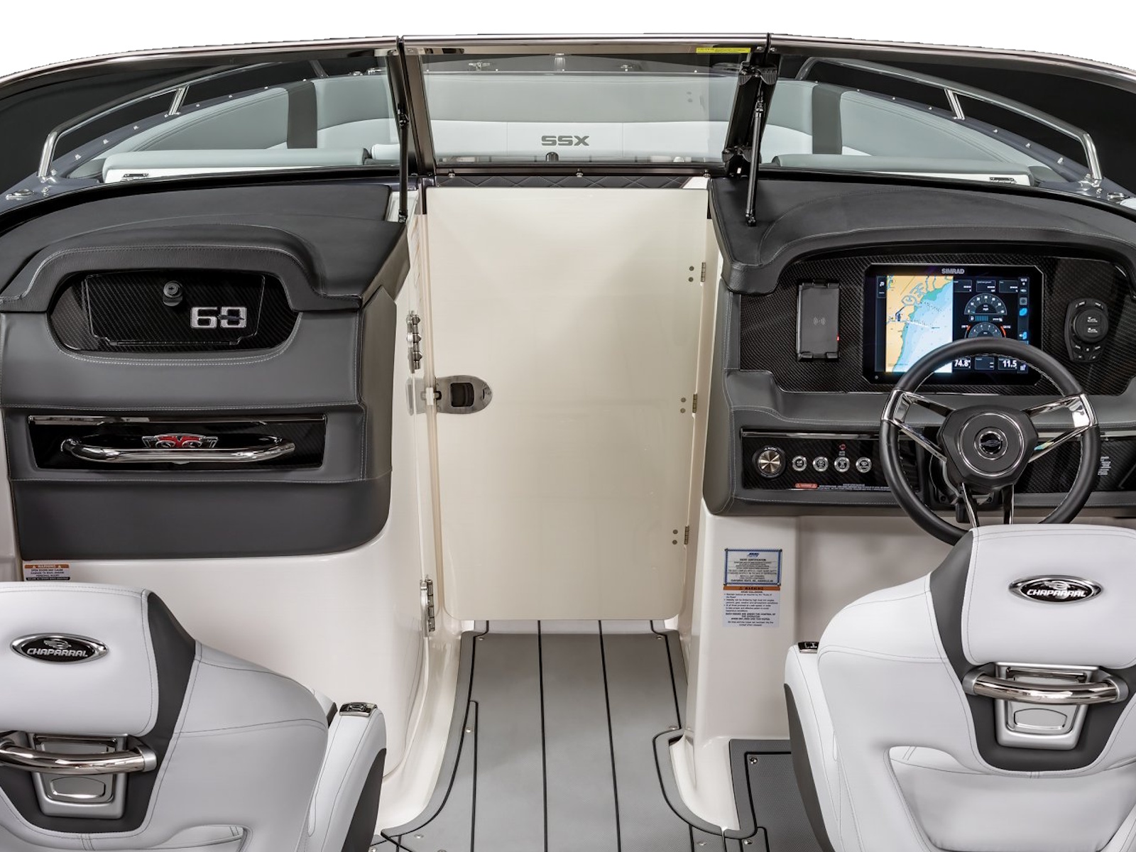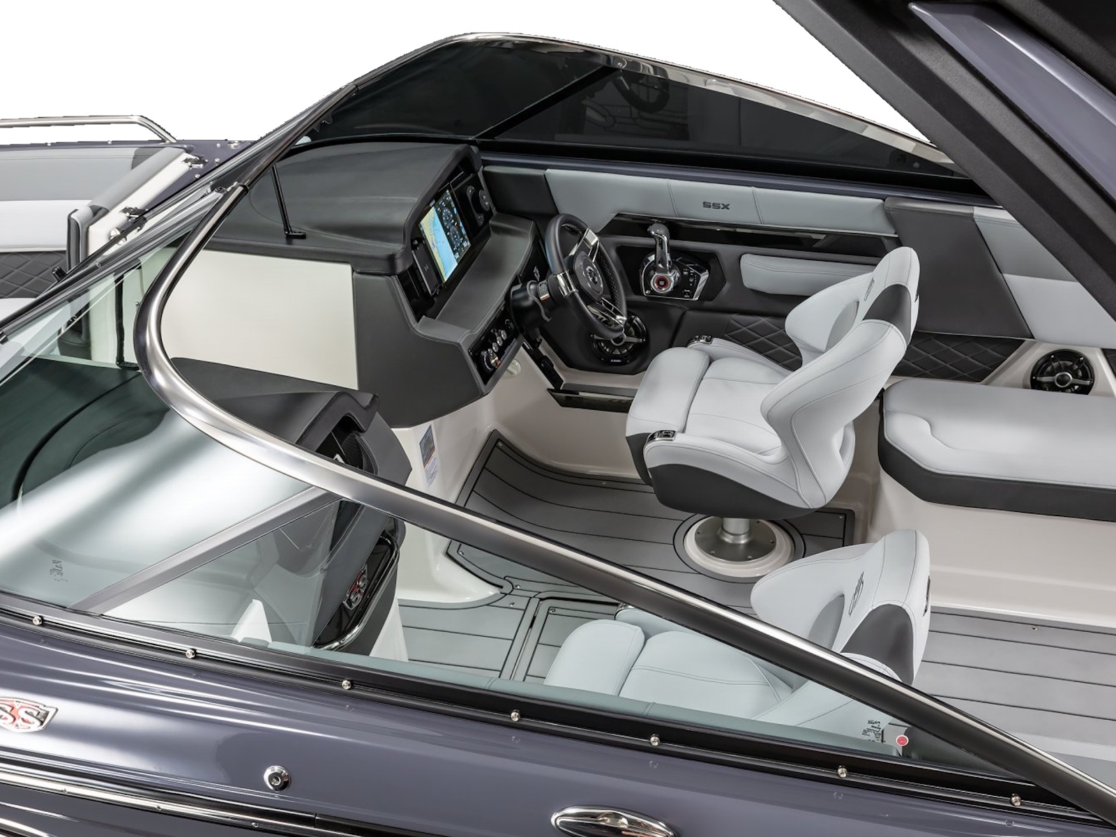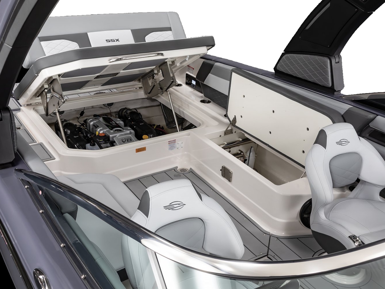 What sets the SSX 8 apart from the competition is the perfect balance of design and performance that Chaparral has achieved with this boat. With a responsive throttle and extended V-Plane hull, the SSX 8 glides effortlessly across the water while relaxing on premium silicone upholstery. With a furnished head, built-in coolers, and the patented Infinity Power Step, a day of boating becomes hassle-free.