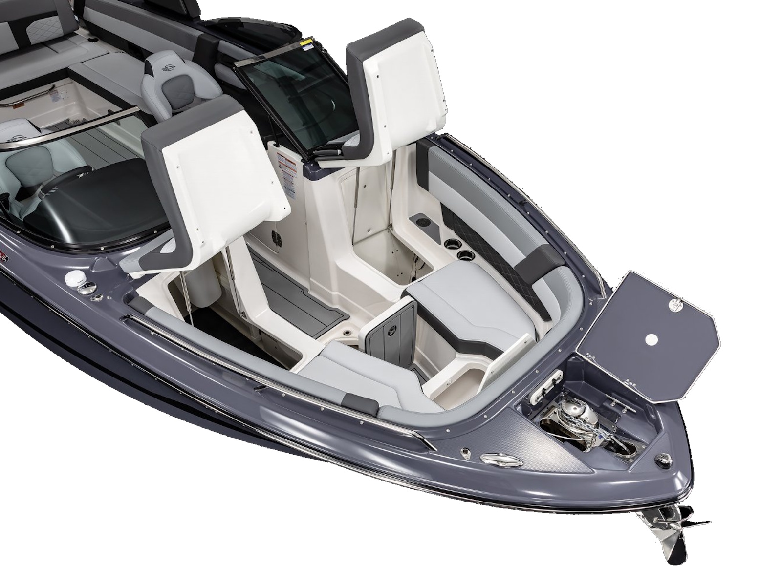 - Bow Passenger Seat Backrests Hinge to Access Large Storage Compartments - Port and Starboard