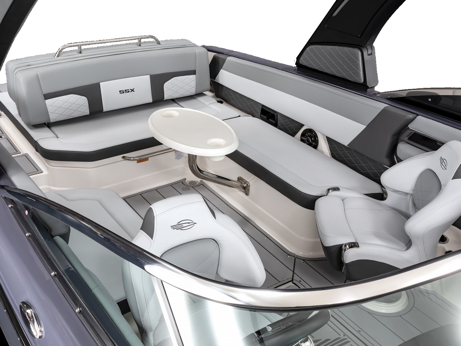 - Cockpit Table with Dedicated Storage and Side Mount Bases in Cockpit and Bow