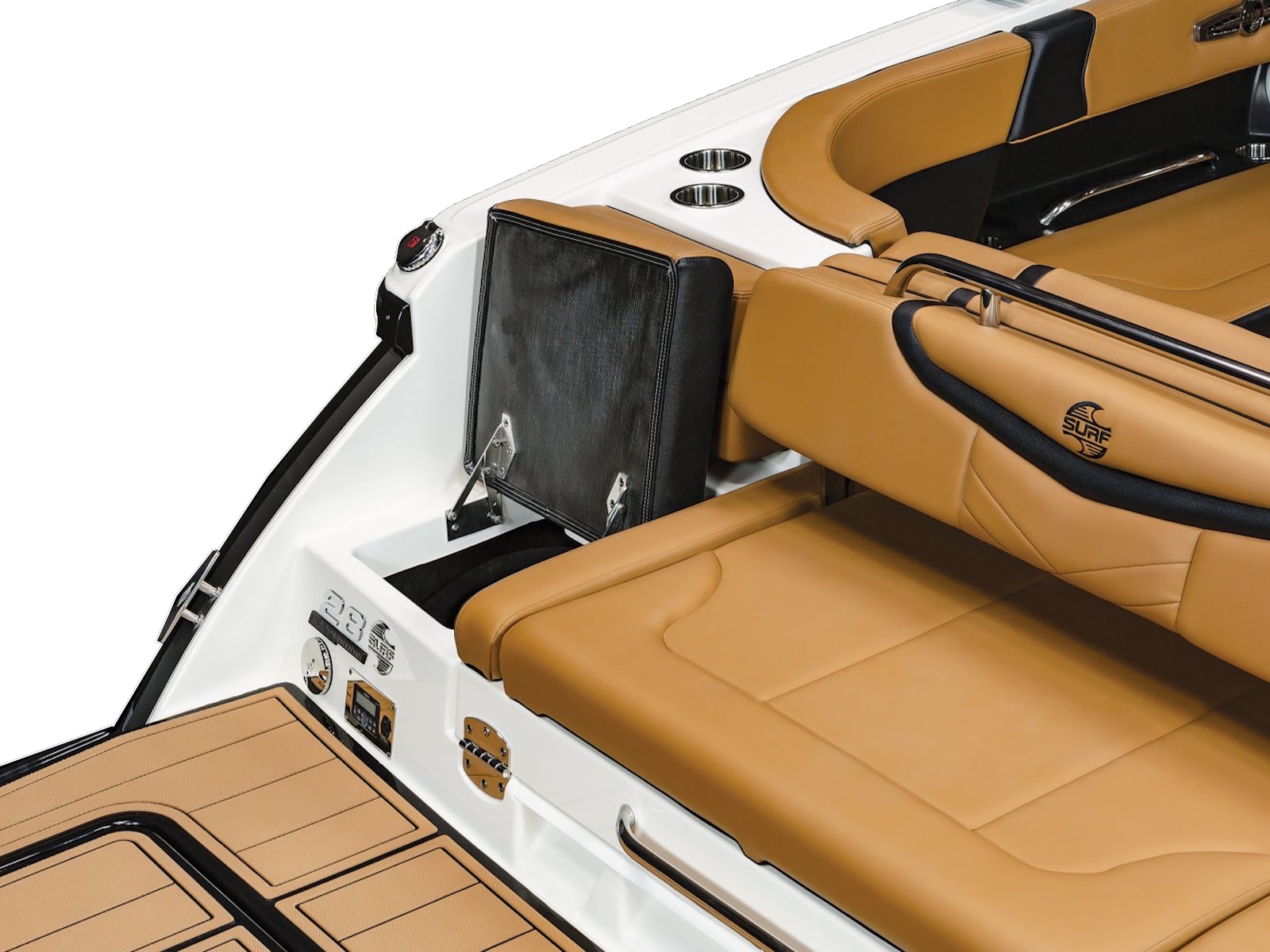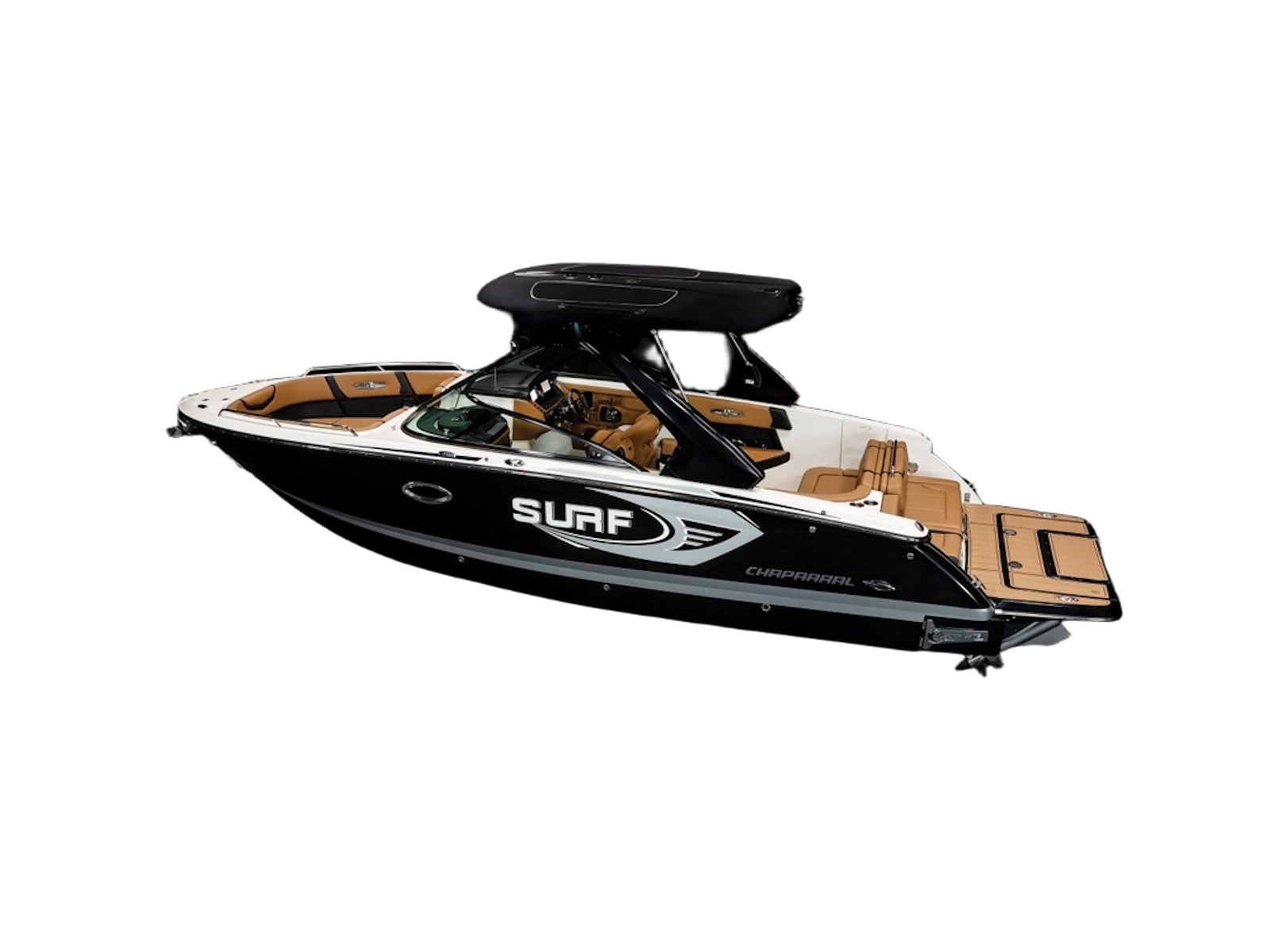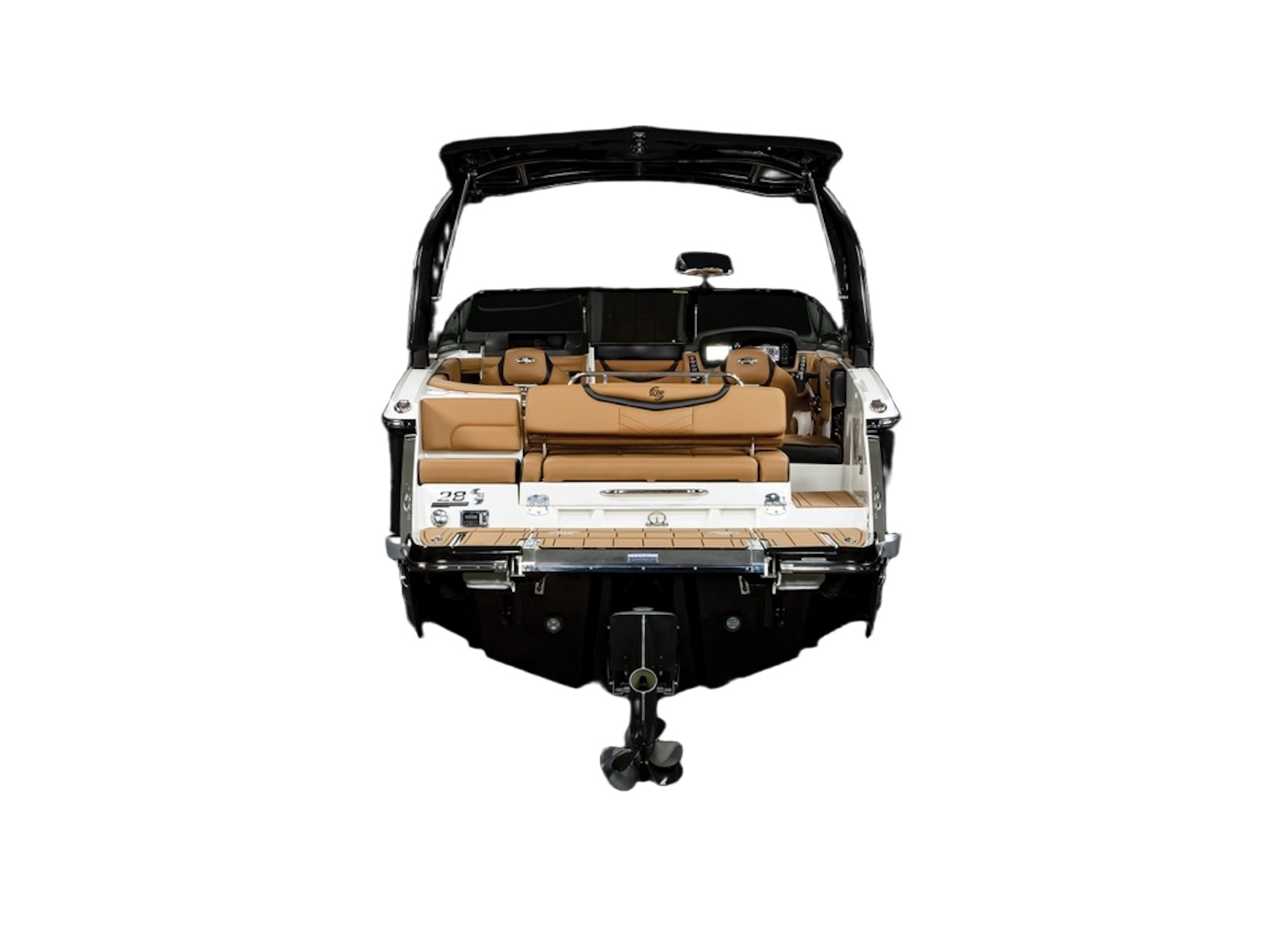 The 28 Surf is available with our most popular package ever - the Black Edition. The Black Edition package elevates the entire boating experience and all starts with premium Black Gelcoated Hullsides and Hullbottom paired with black metal finishes around the windshield. Moving to the interior, the new soft Silicone Cayenne interior with black accents will surely turn heads.