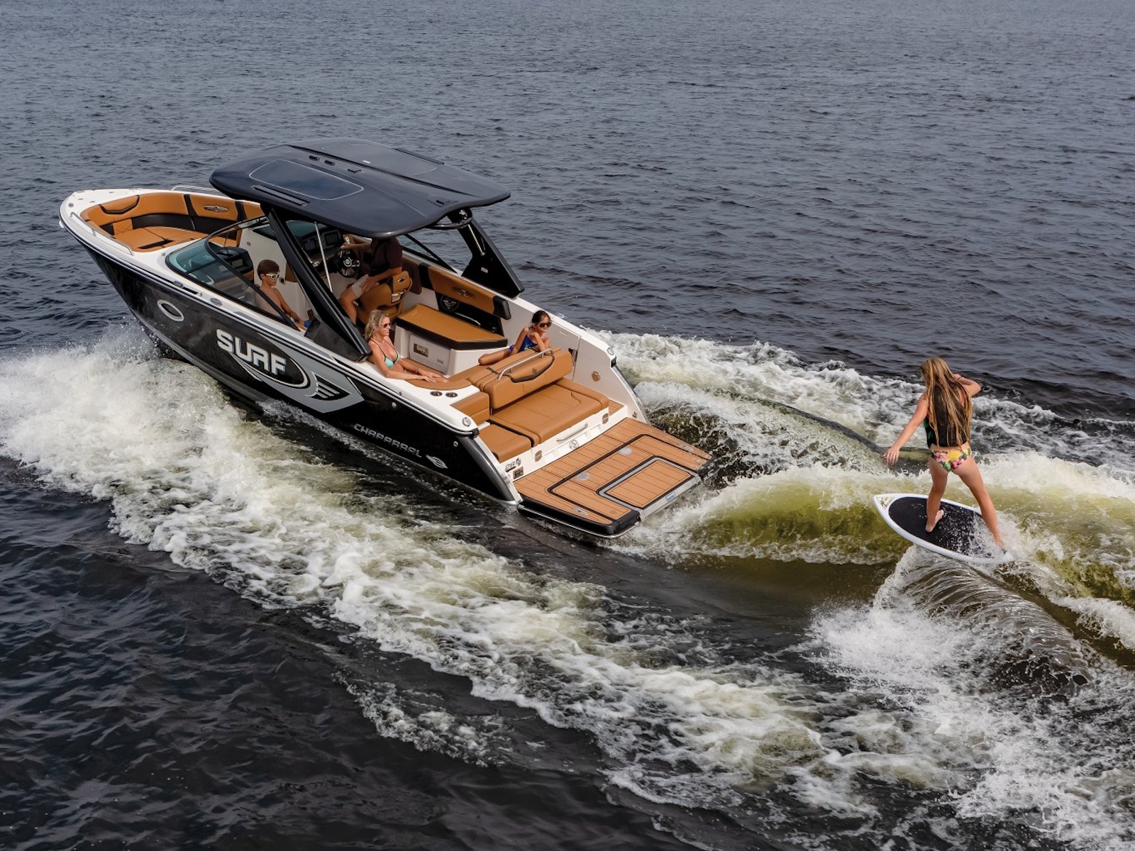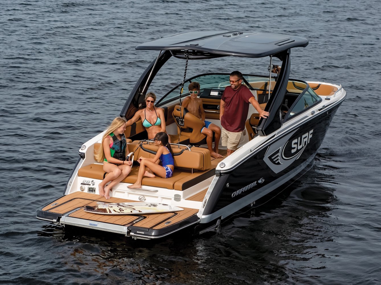 With a LOA of 28 feet, Malibu Surf Gates™, and an Infinity Power Step swim platform, don't just pretend to wake surf, surf like you mean it with the 28 Surf from Chaparral.