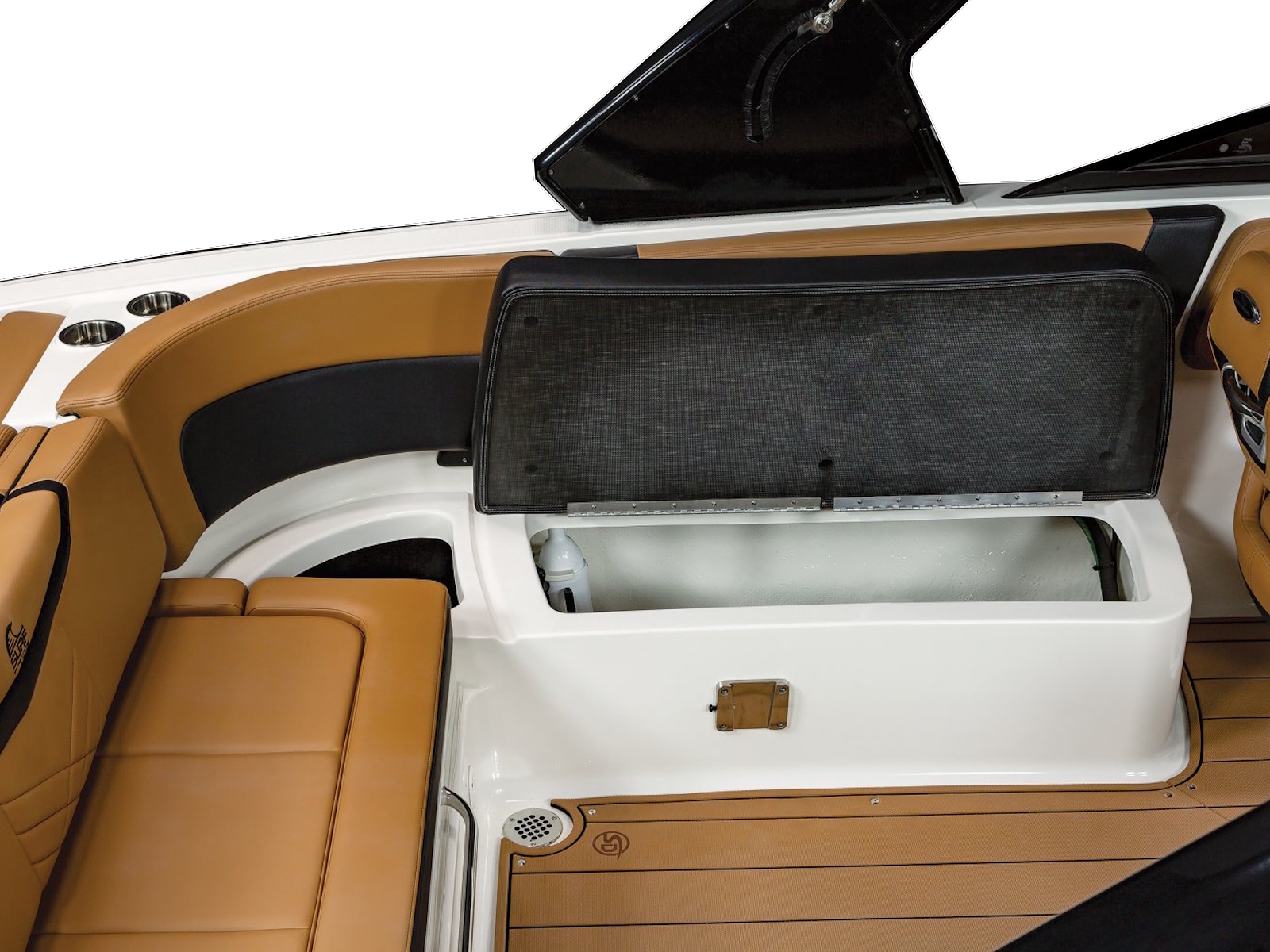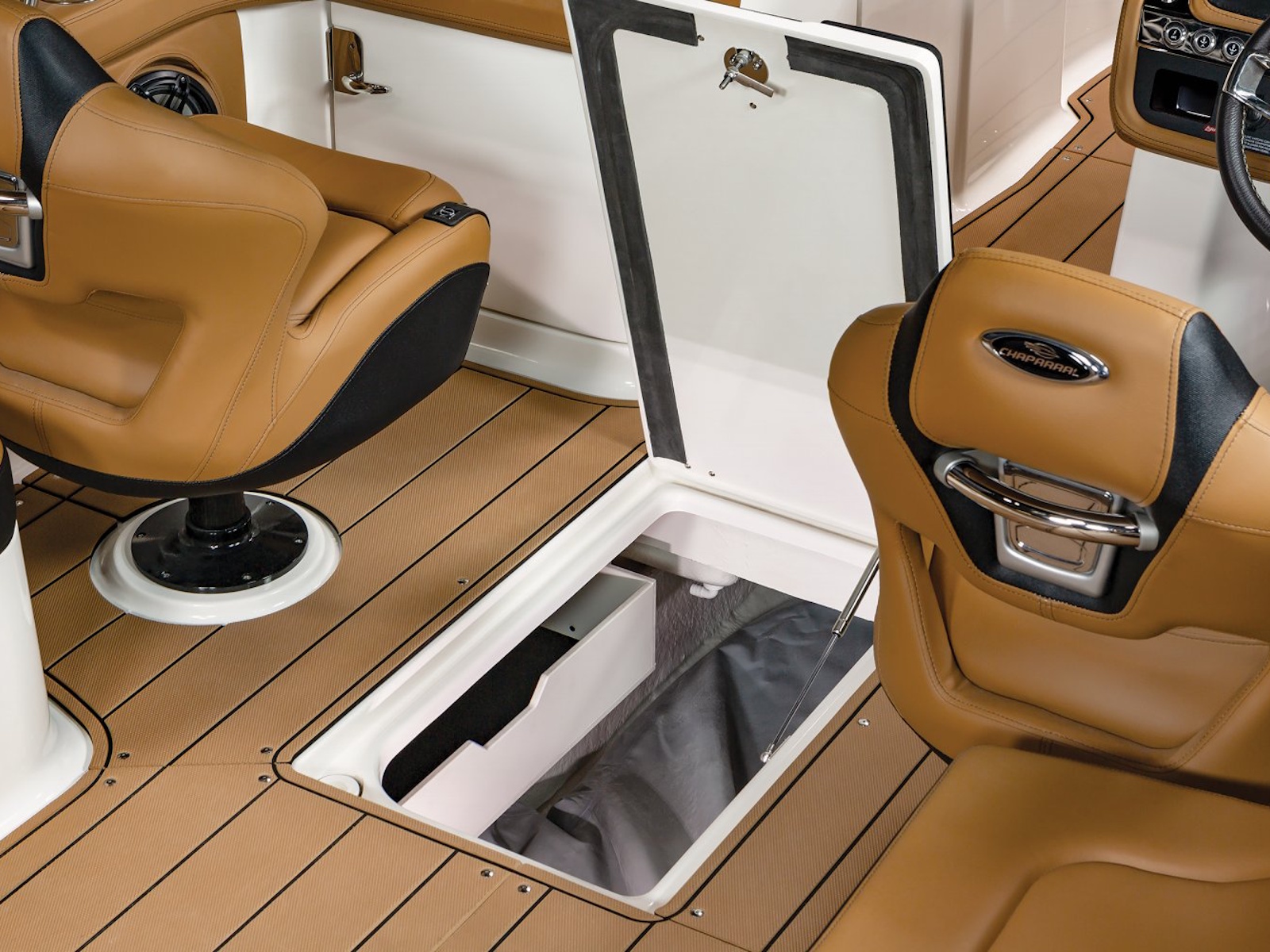 - Storage Under Starboard with Protective Mat and Trash Receptacle