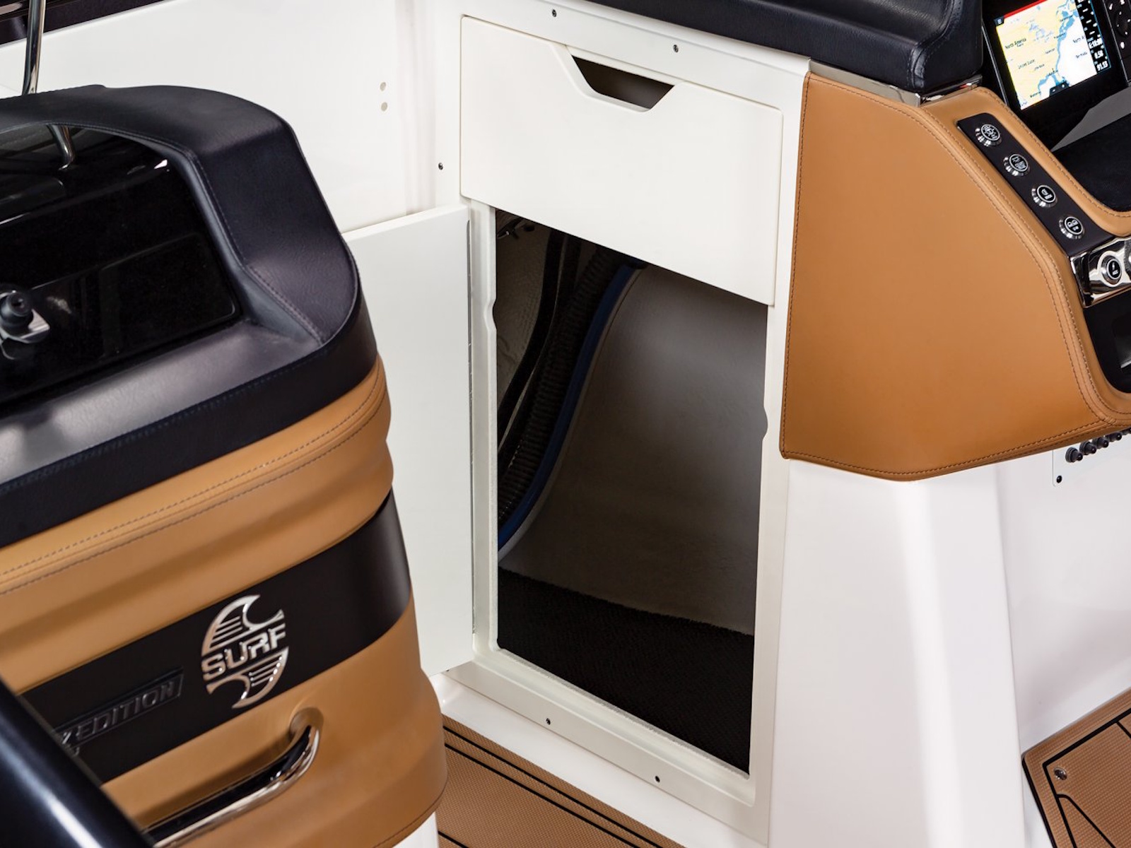 - Cockpit Table with Dedicated Storage and Side Mount Bases in Cockpit and Bow