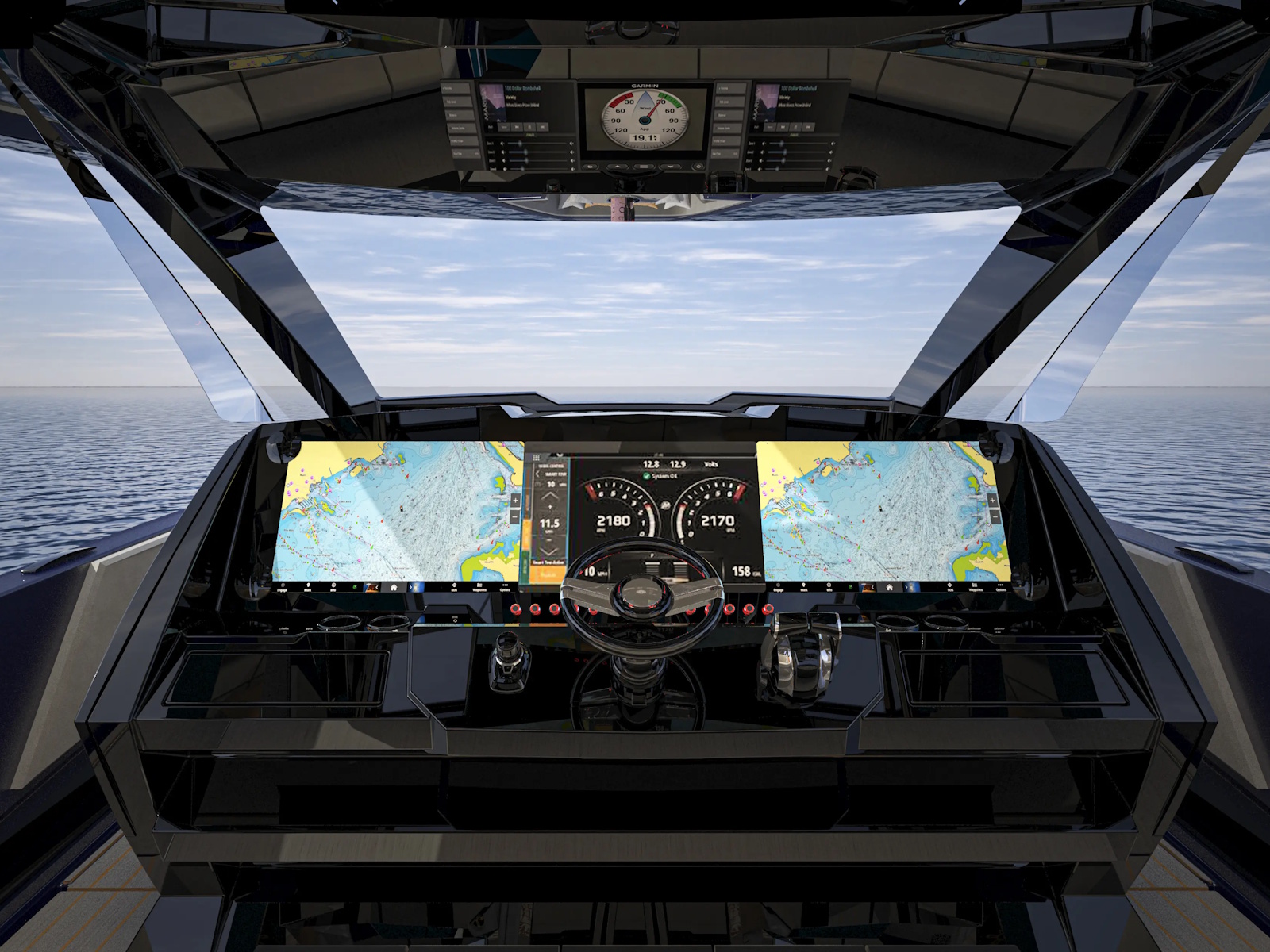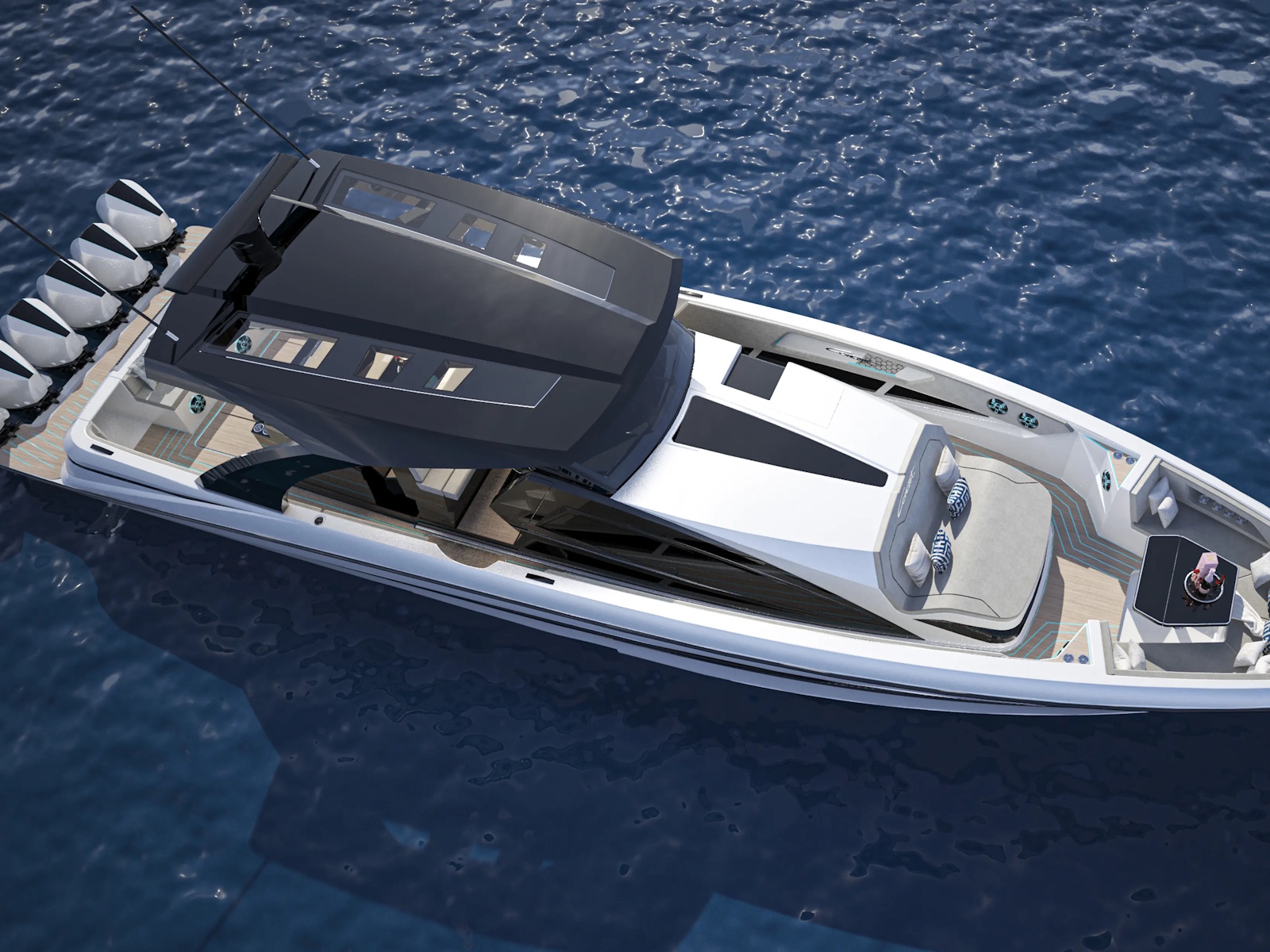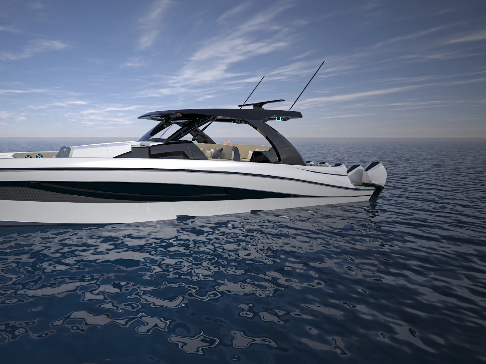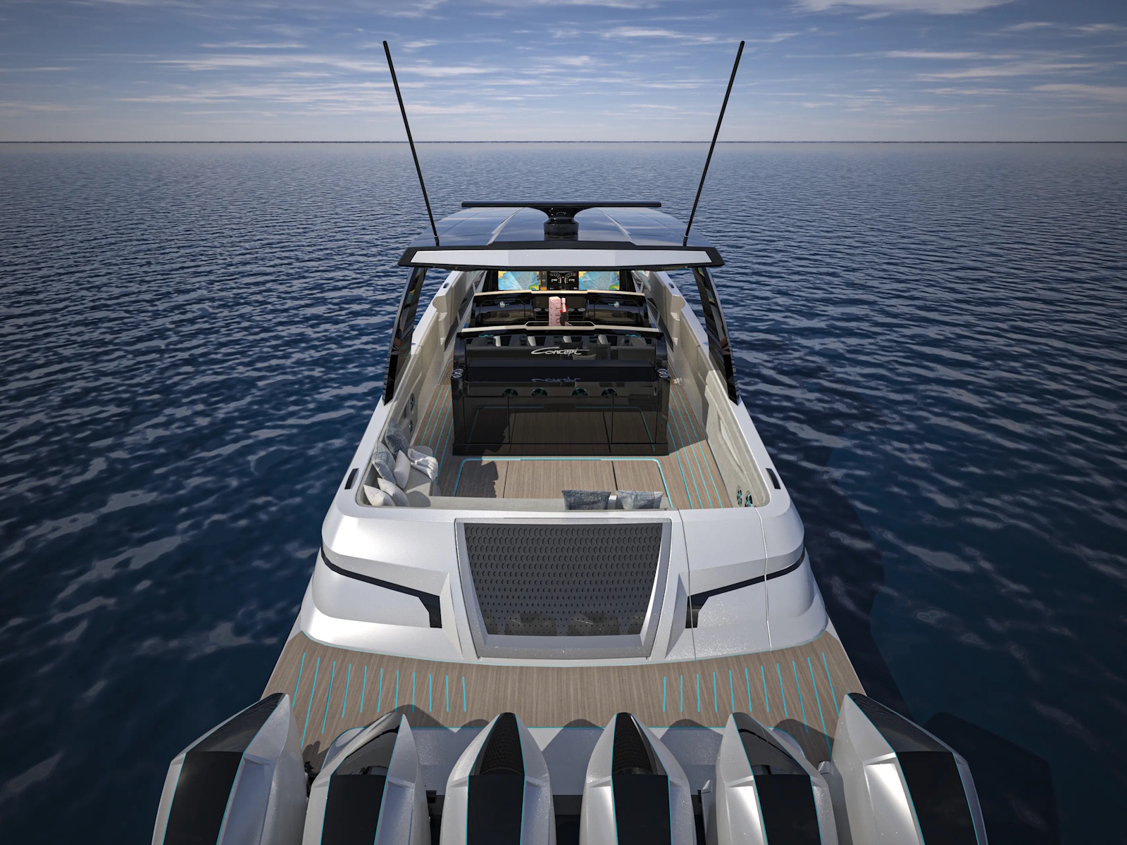 Configured with either quad or quint Mercury 600R’s, quad or quint Mercury 500R’s or sextuple Mercury 500R’s, the Concept 5300 is as much power as it is looks.