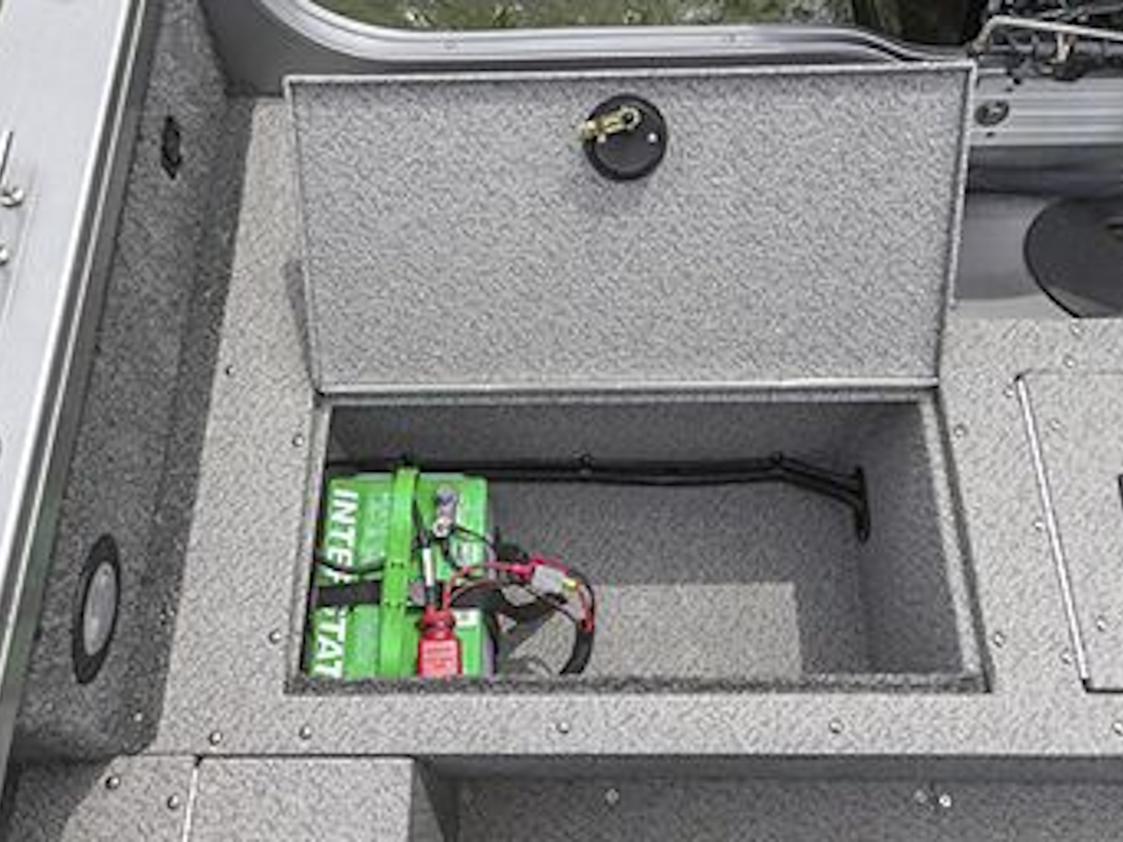 • Outfitted with individual rod tubes for protection, a spacious center rod storage area cradles five 7’ rods, five 6’9” rods, and a 24v battery and charger.