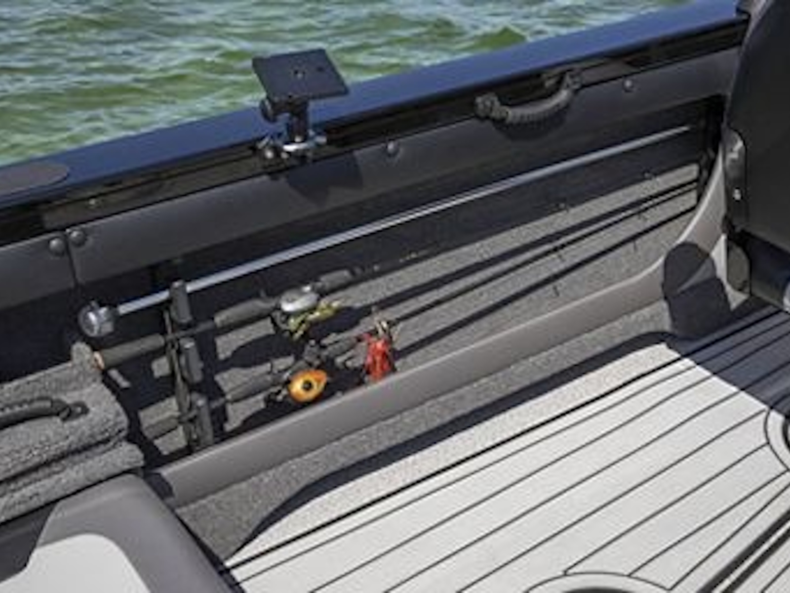 - The lockable, high-capacity mid-rise storage locker provides ample space for rods, a removable ski pylon and essential water sports gear. The rod rack accommodates up to four 7' 6" rods.