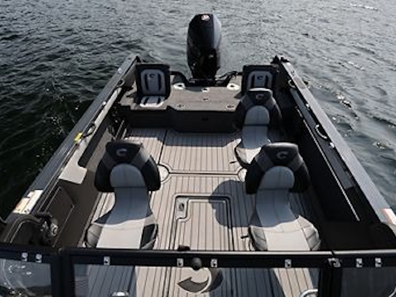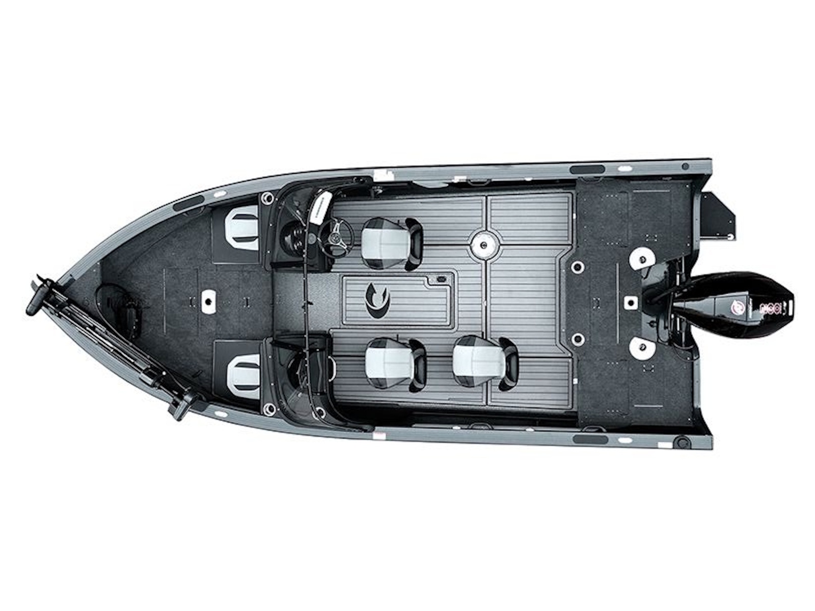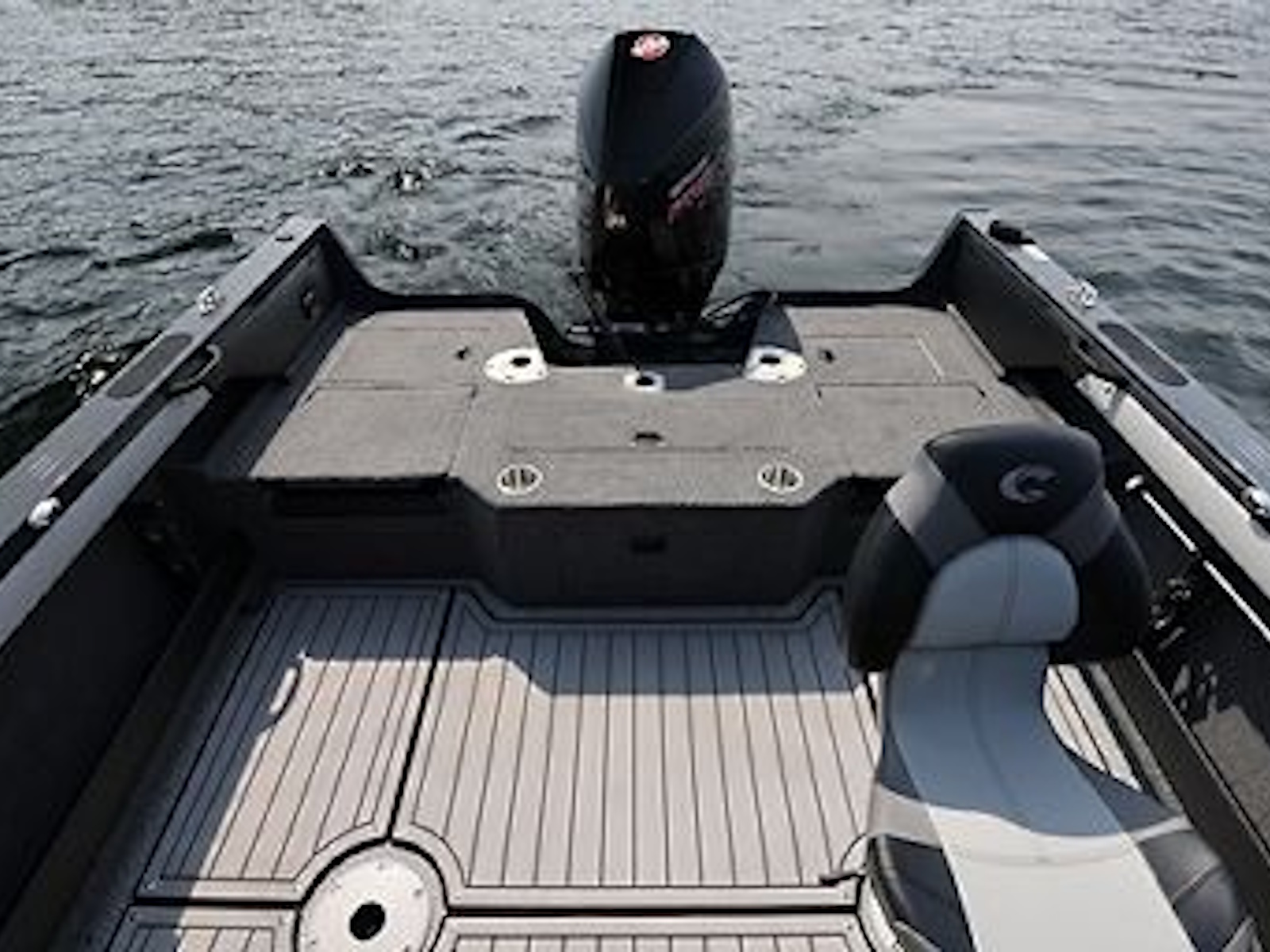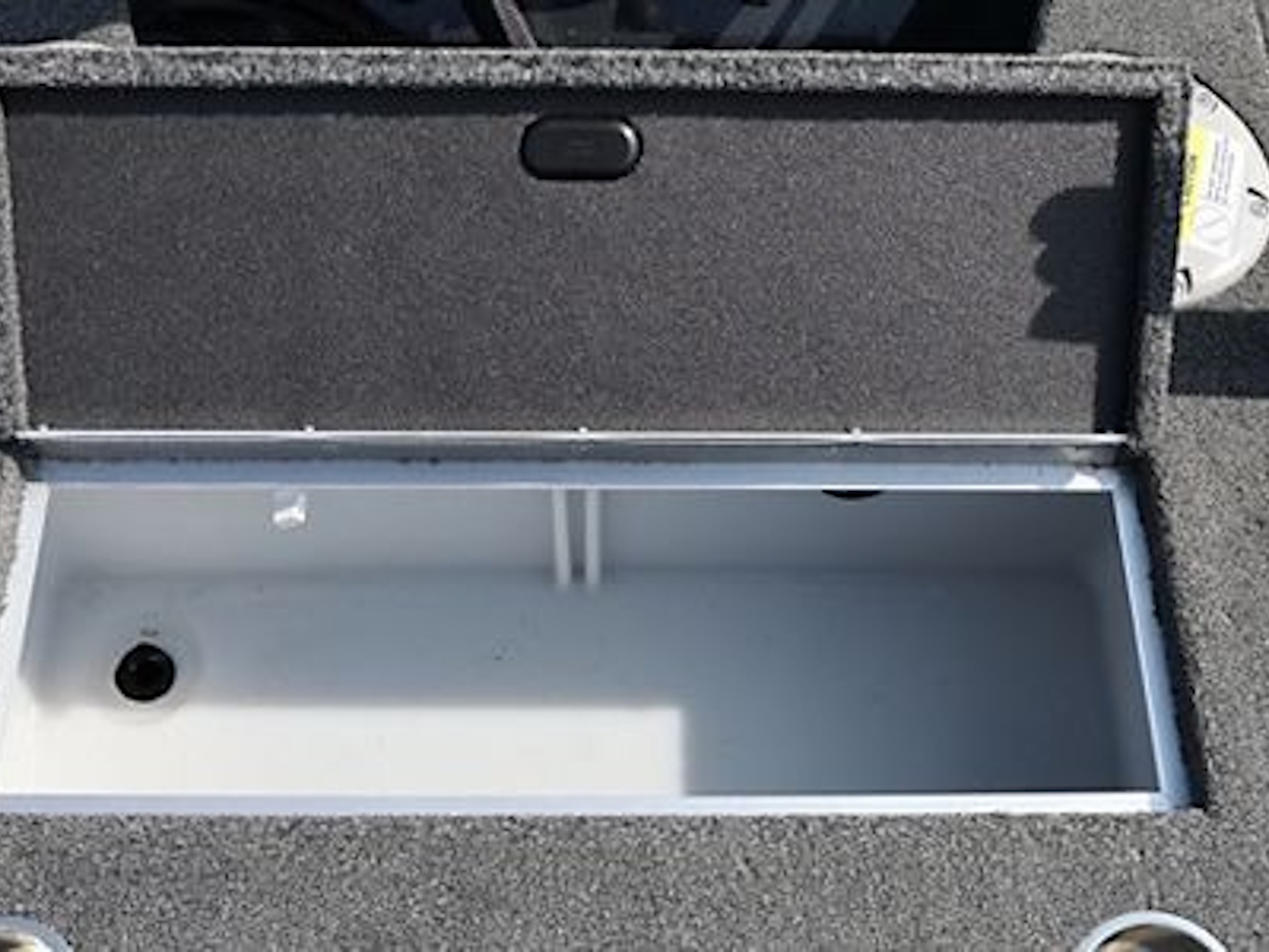 - The high-capacity center in-floor storage locker provides ample space for all your watersports gear, complete with a rod rack tube system that accommodates 8’ rods.