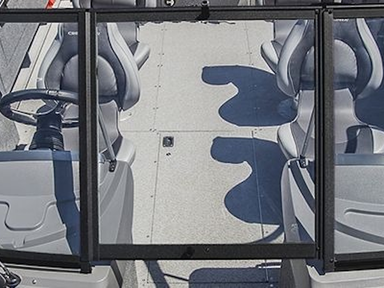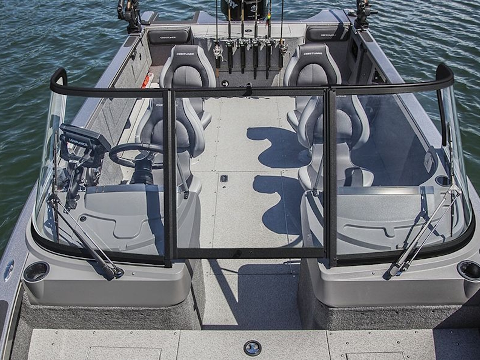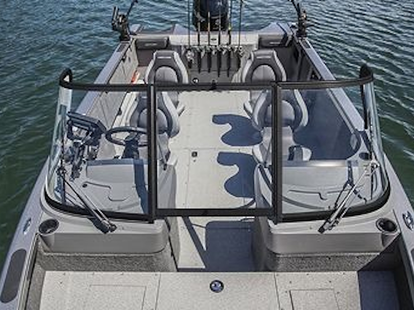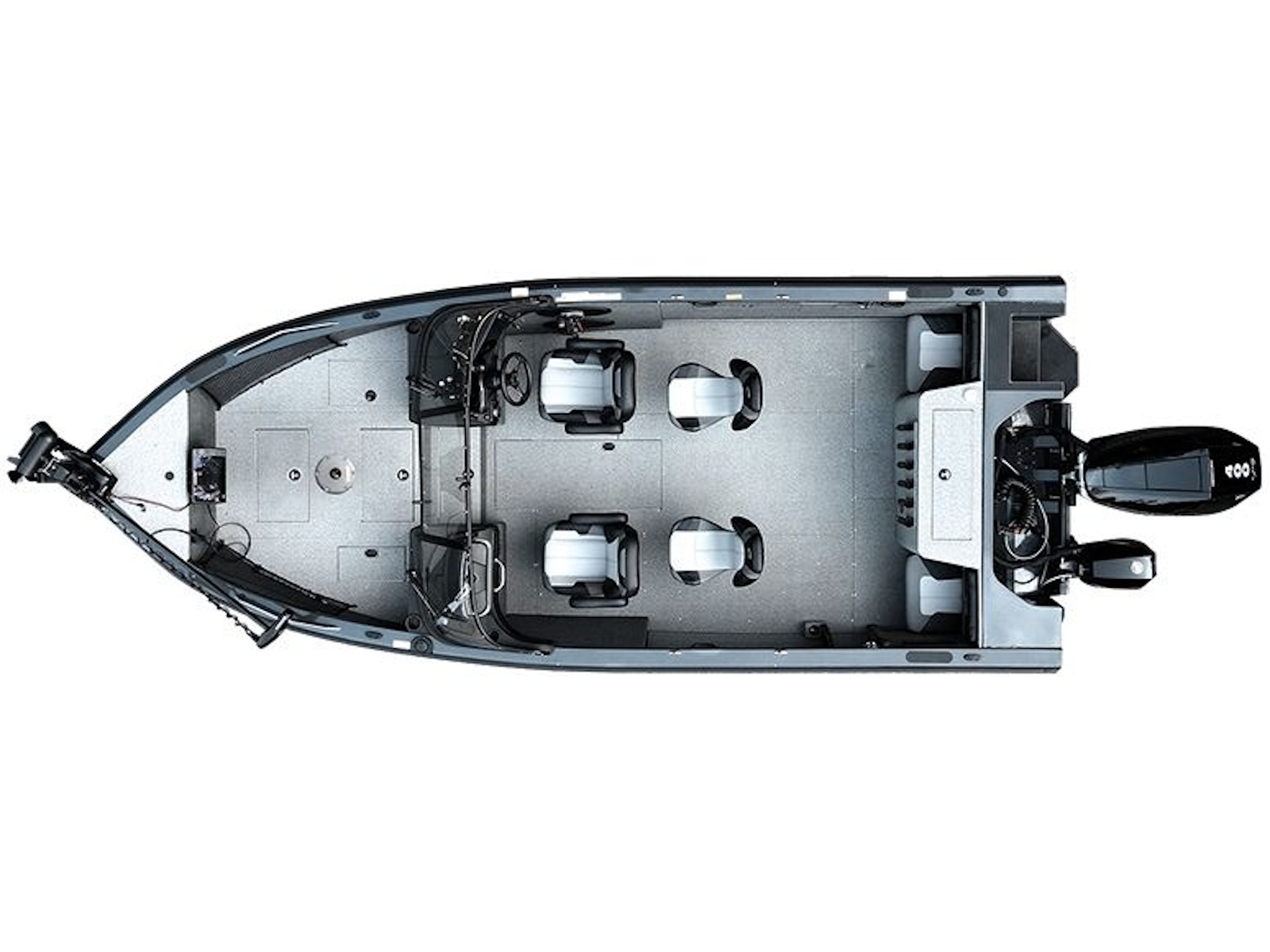 - The large, open cockpit comes standard with four Pro Seats for fishing comfort throughout the boat.