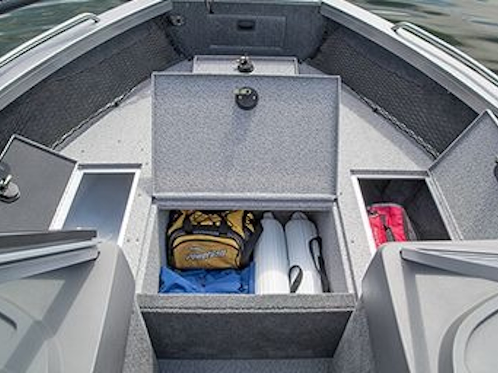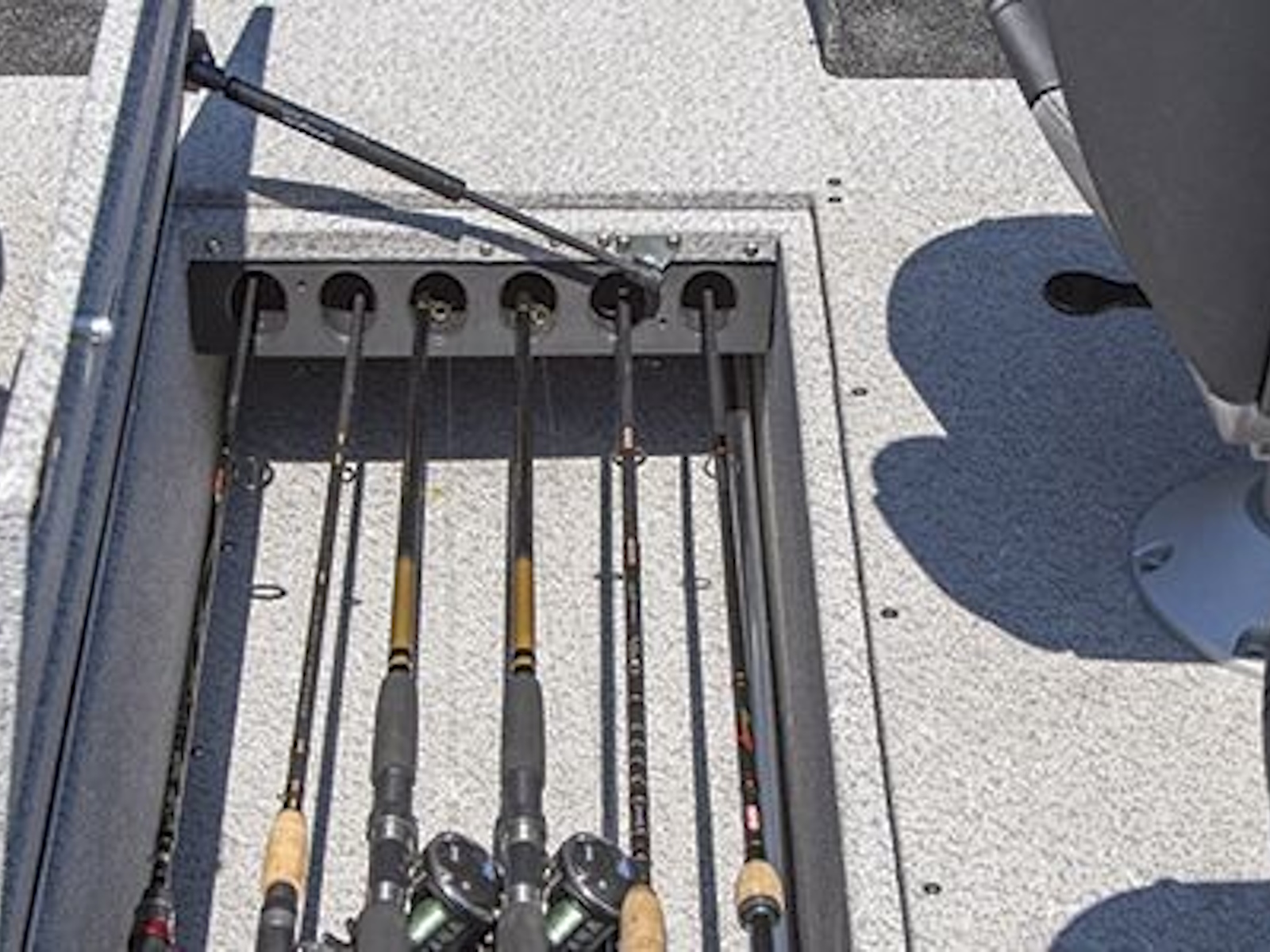 - Easily accessible, spacious and lockable, the in-floor rod locker features six tubes that can hold 8’ rods with additional open rod storage below.