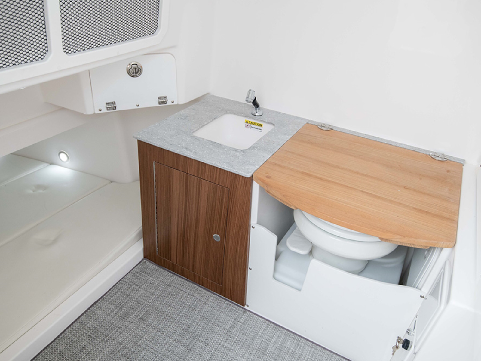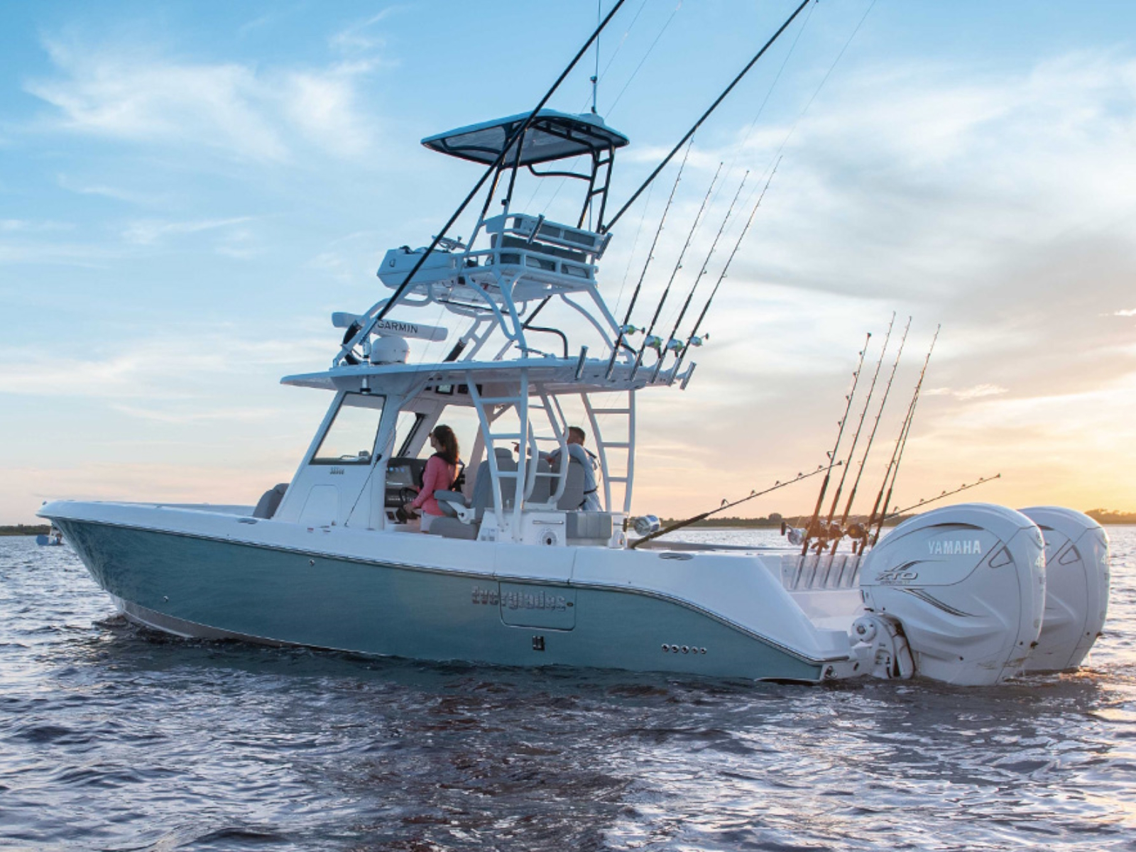 With tons of rod holders and lockable storage throughout the gunwales, livewells for your bait, and the go-anywhere-in-any-condition console, the 365cc is built to haul in a hefty catch. This fun and fishable boat also boasts the largest deadrise at transom as well as the largest weight capacity of any comparable boat.