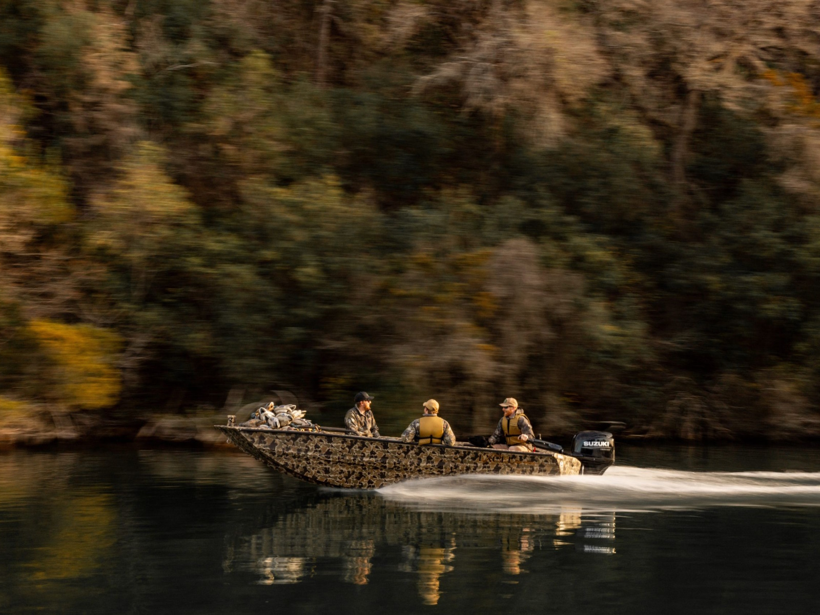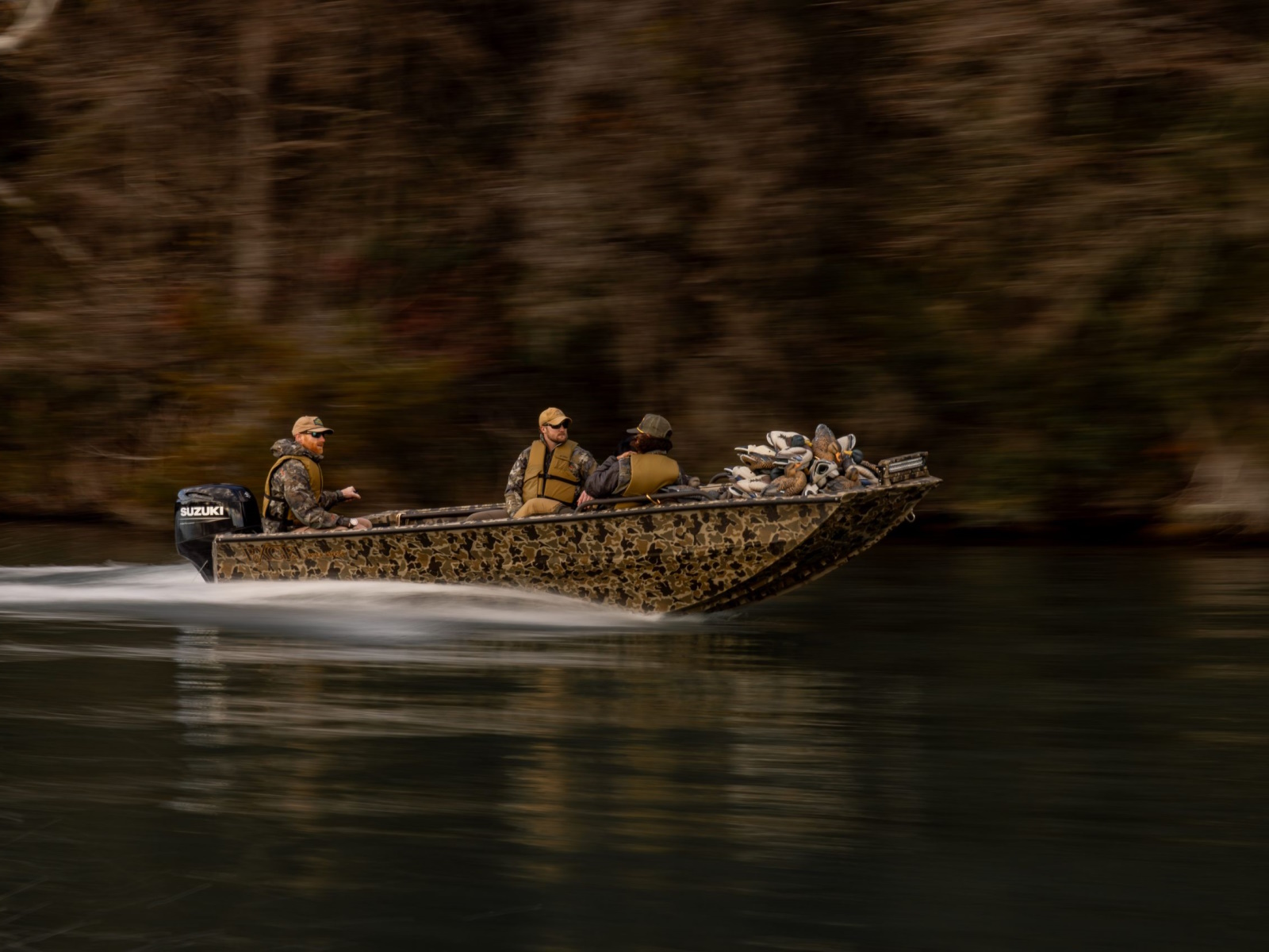 Whether fishing for bass, hunting timber or a family day on the lake; the River Warrior does it all. The 16’ & 17′ lengths and wide 80” beam provides plenty of elbow room for fishing partners, decoys, gear and kids. Rated for a 60HP outboard; this boat will get you there fast.