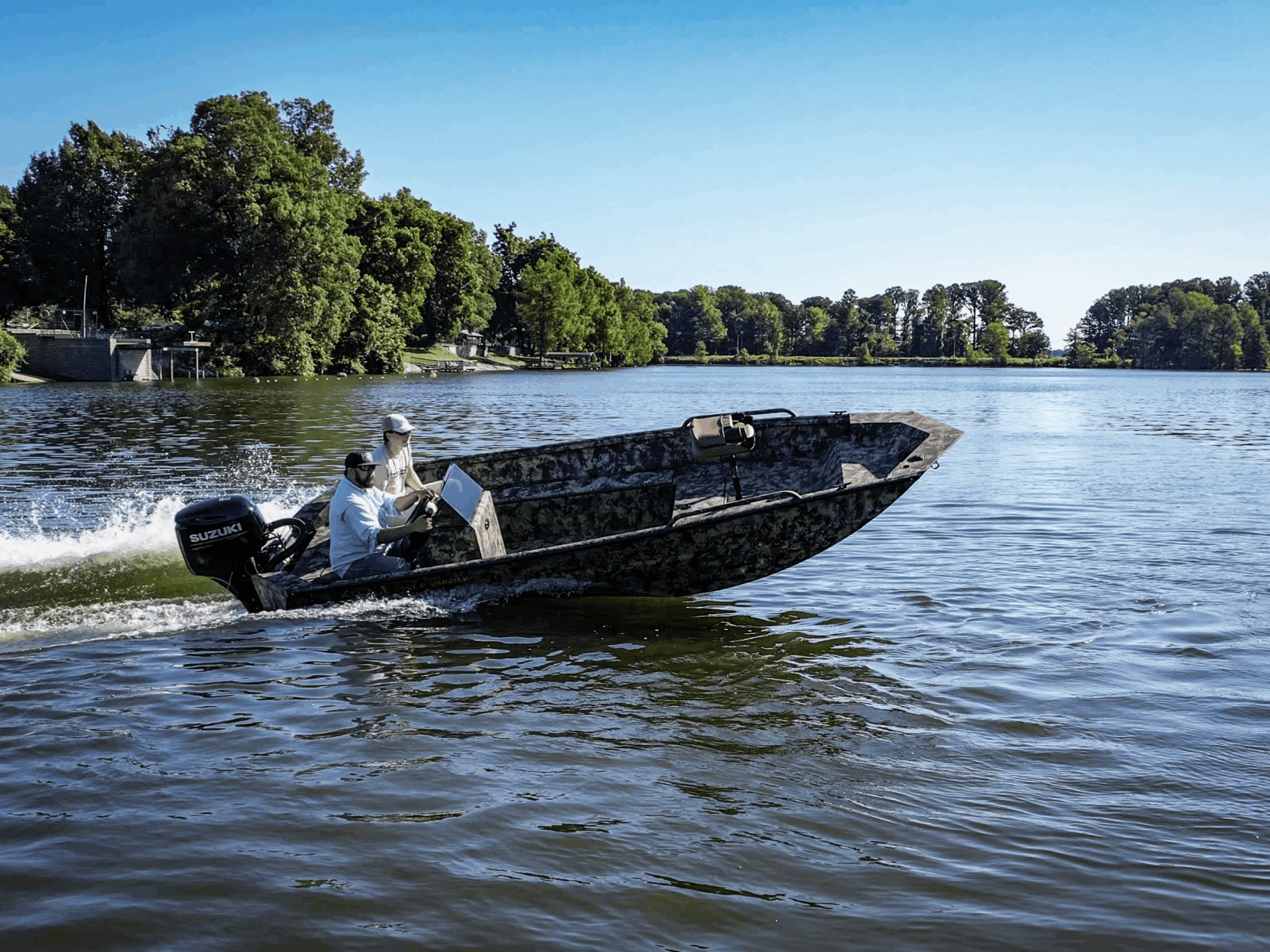 Whether fishing for bass, hunting timber or a family day on the lake; the River Warrior does it all. The 16’ length and wide 80” beam provides plenty of elbow room for fishing partners, decoys, gear and kids. Rated for a 60HP outboard; this boat will get you there fast.