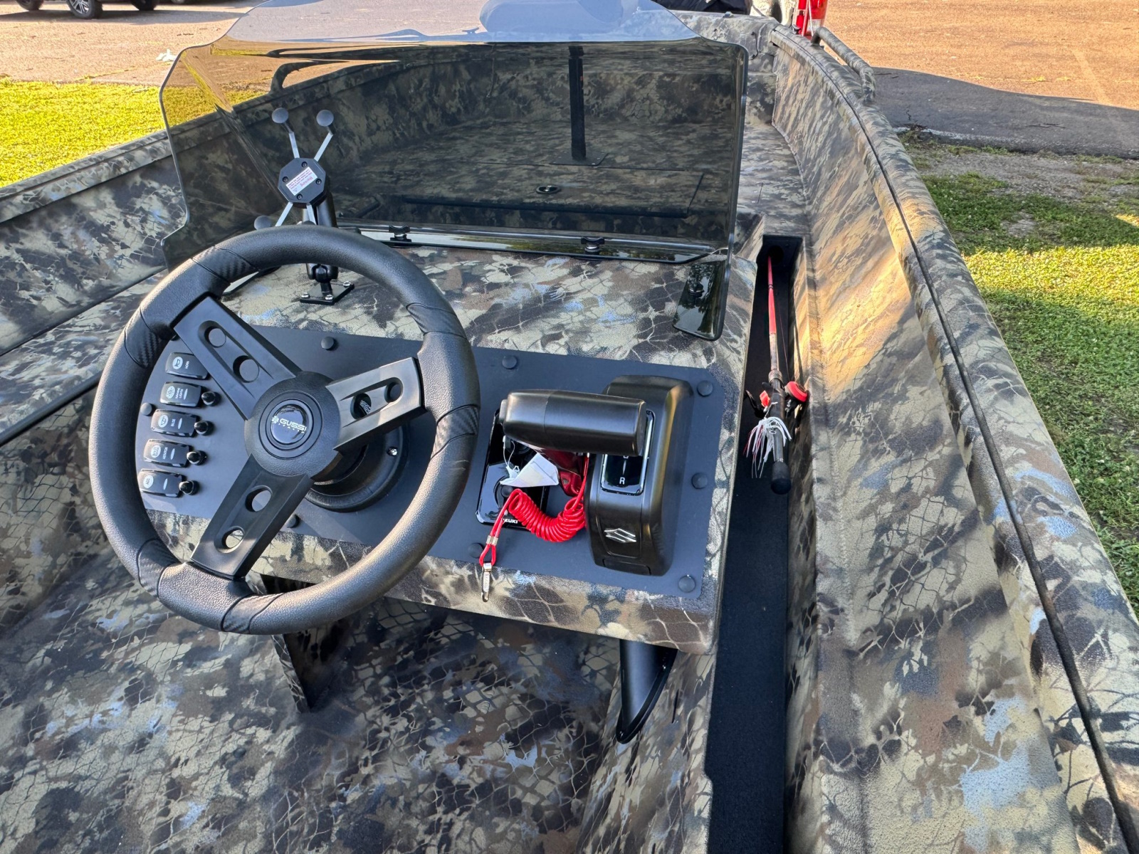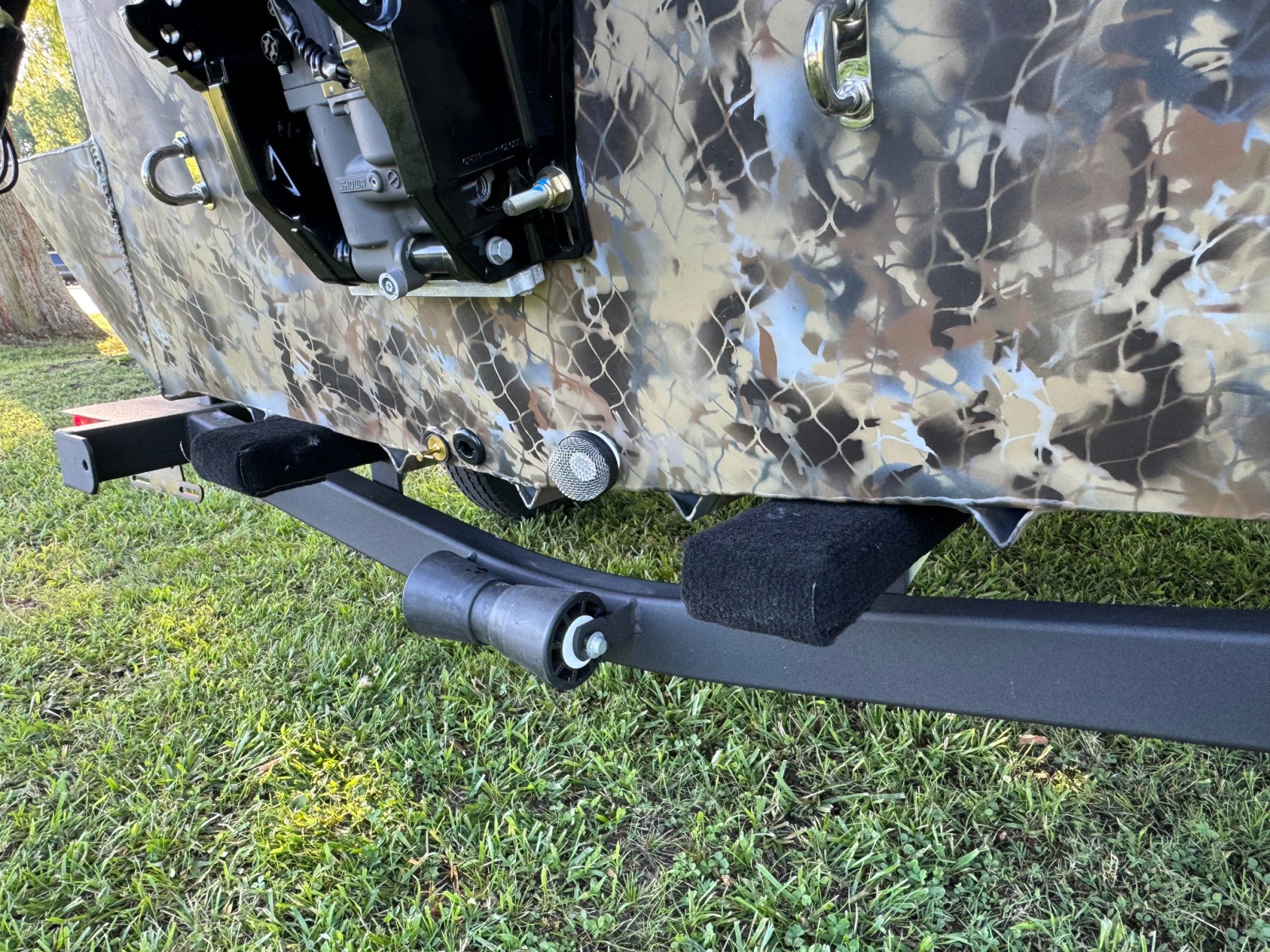 - Optimal 17 degree transom for superior outboard and mud motor trim control