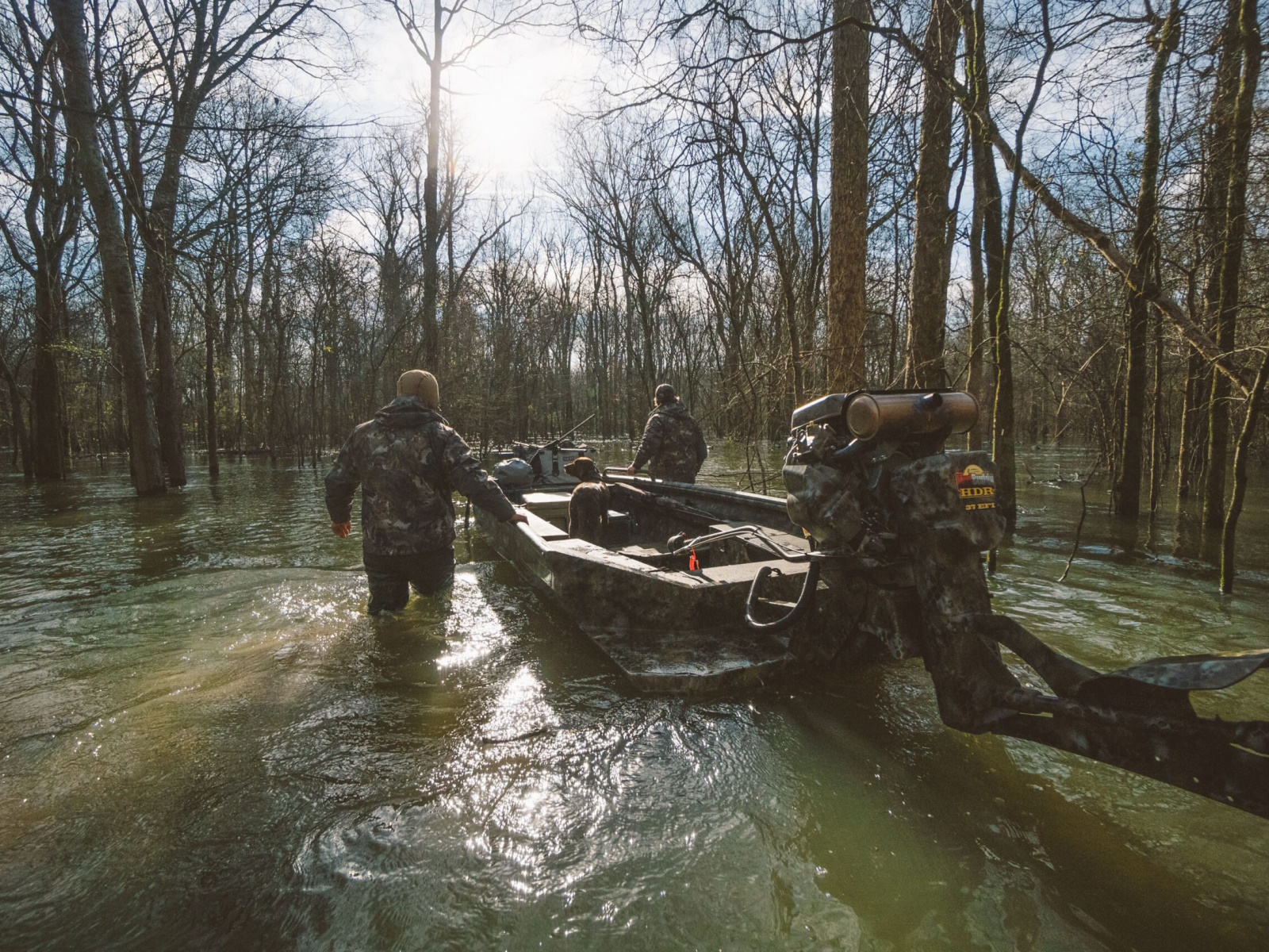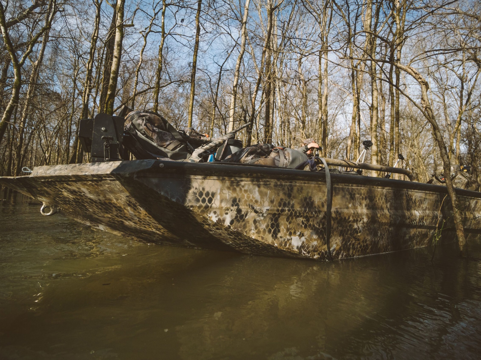 The F4 step-deck allows you to effortlessly climb in-and-out of the boat and serves as a vantage point for your retriever. This innovative step deck introduced by Excel’s owner over 18 years ago with the Mud Buddy MR-18 Mallard with hunt deck, started the shallow water boat step deck revolution and has set the standard for all high-end shallow water duck boats.
