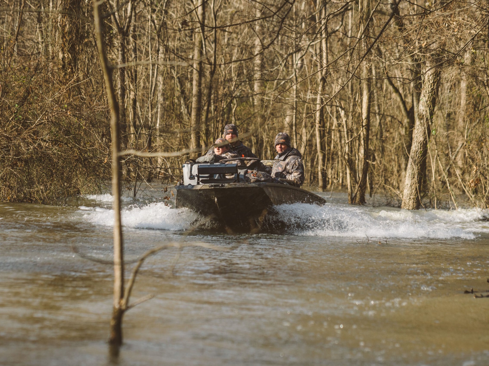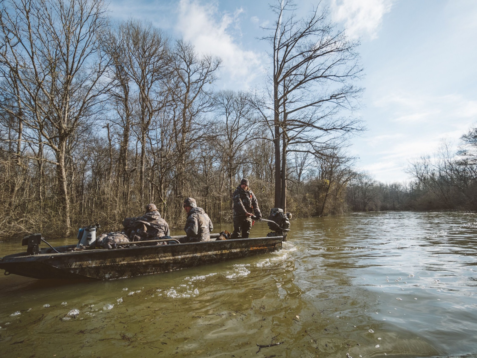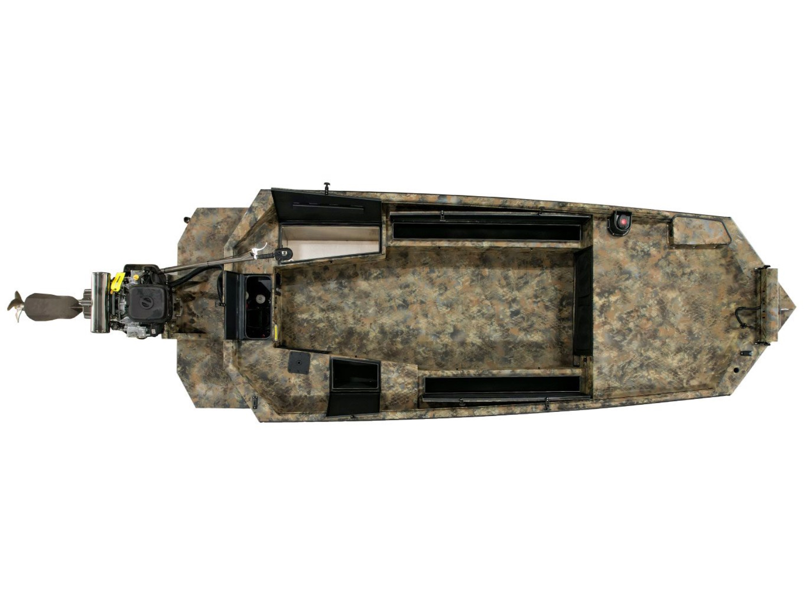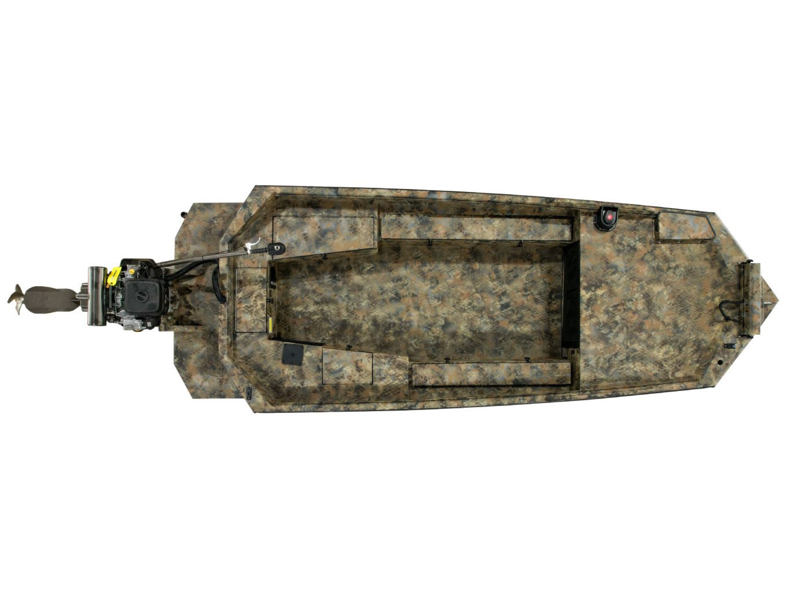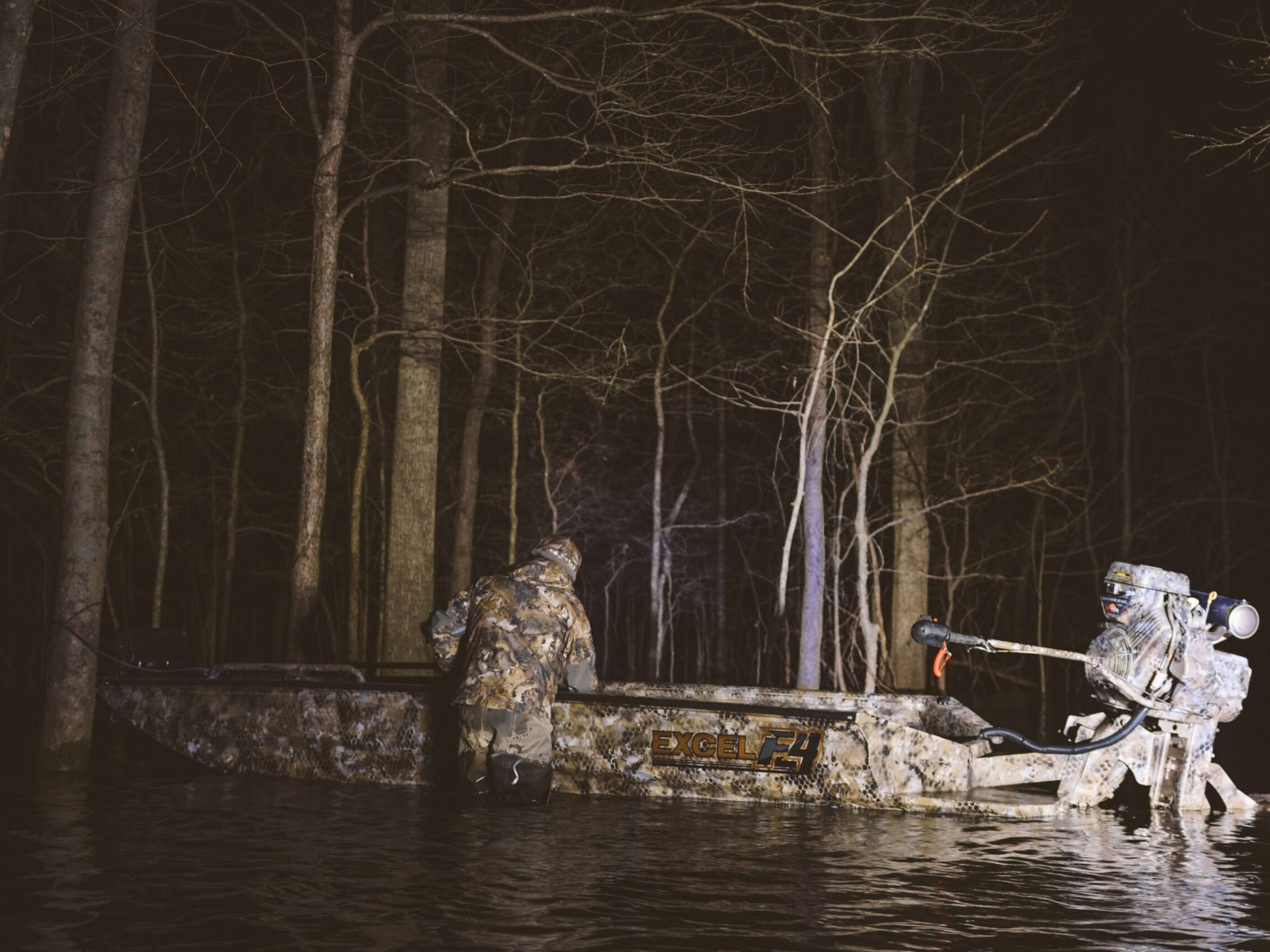 The F4 step-deck allows you to effortlessly climb in-and-out of the boat and serves as a vantage point for your retriever. This innovative step deck introduced by Excel’s owner over 18 years ago with the Mud Buddy MR-18 Mallard with hunt deck, started the shallow water boat step deck revolution and has set the standard for all high-end shallow water duck boats.