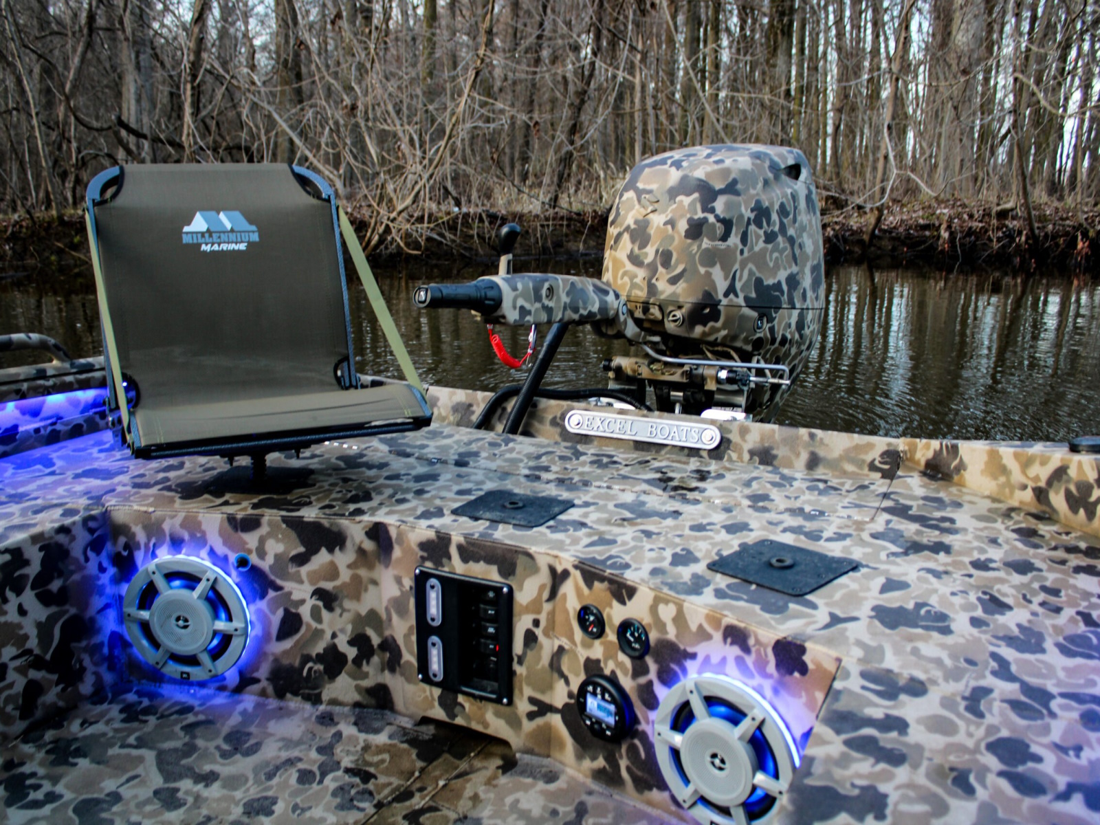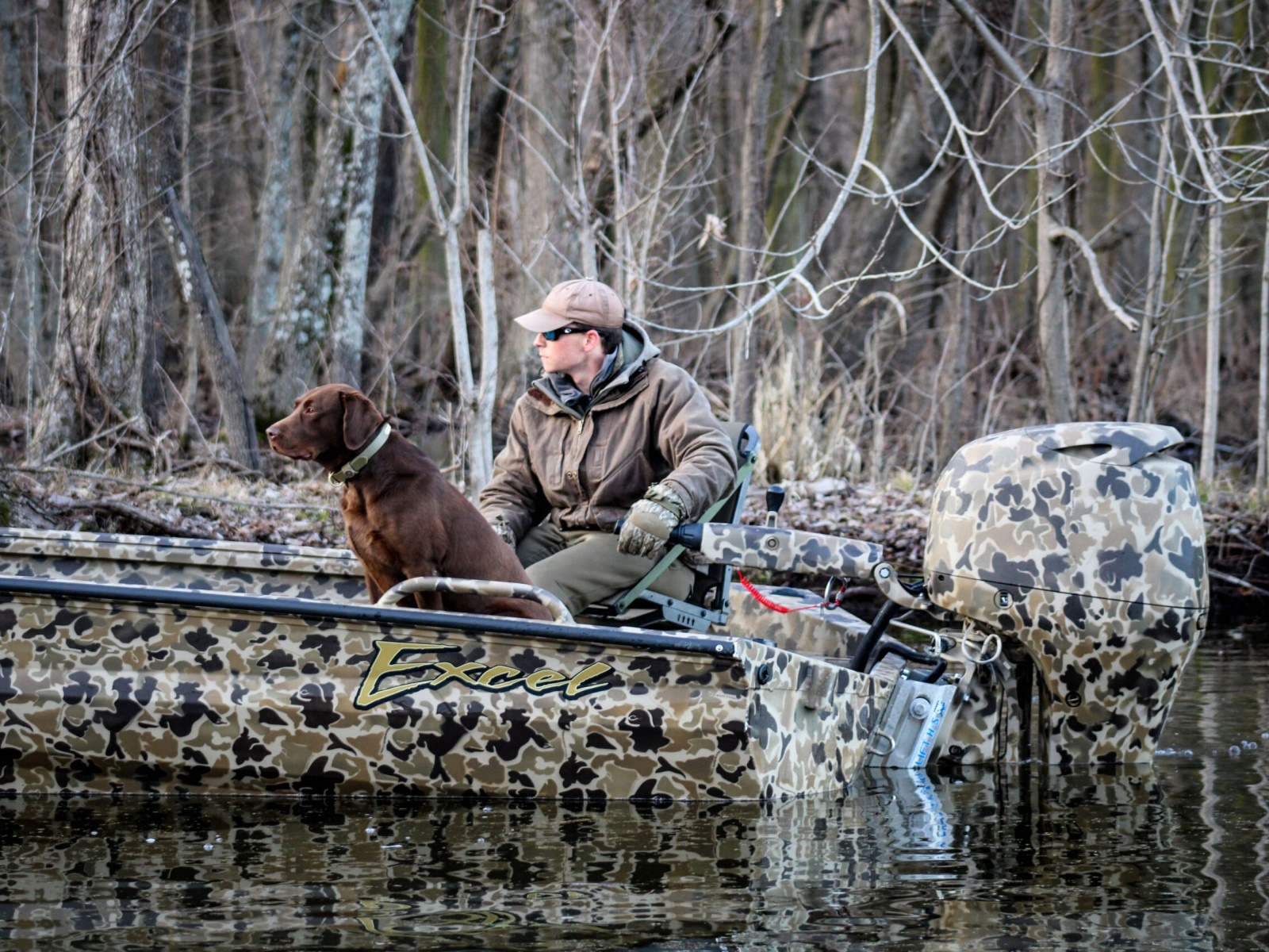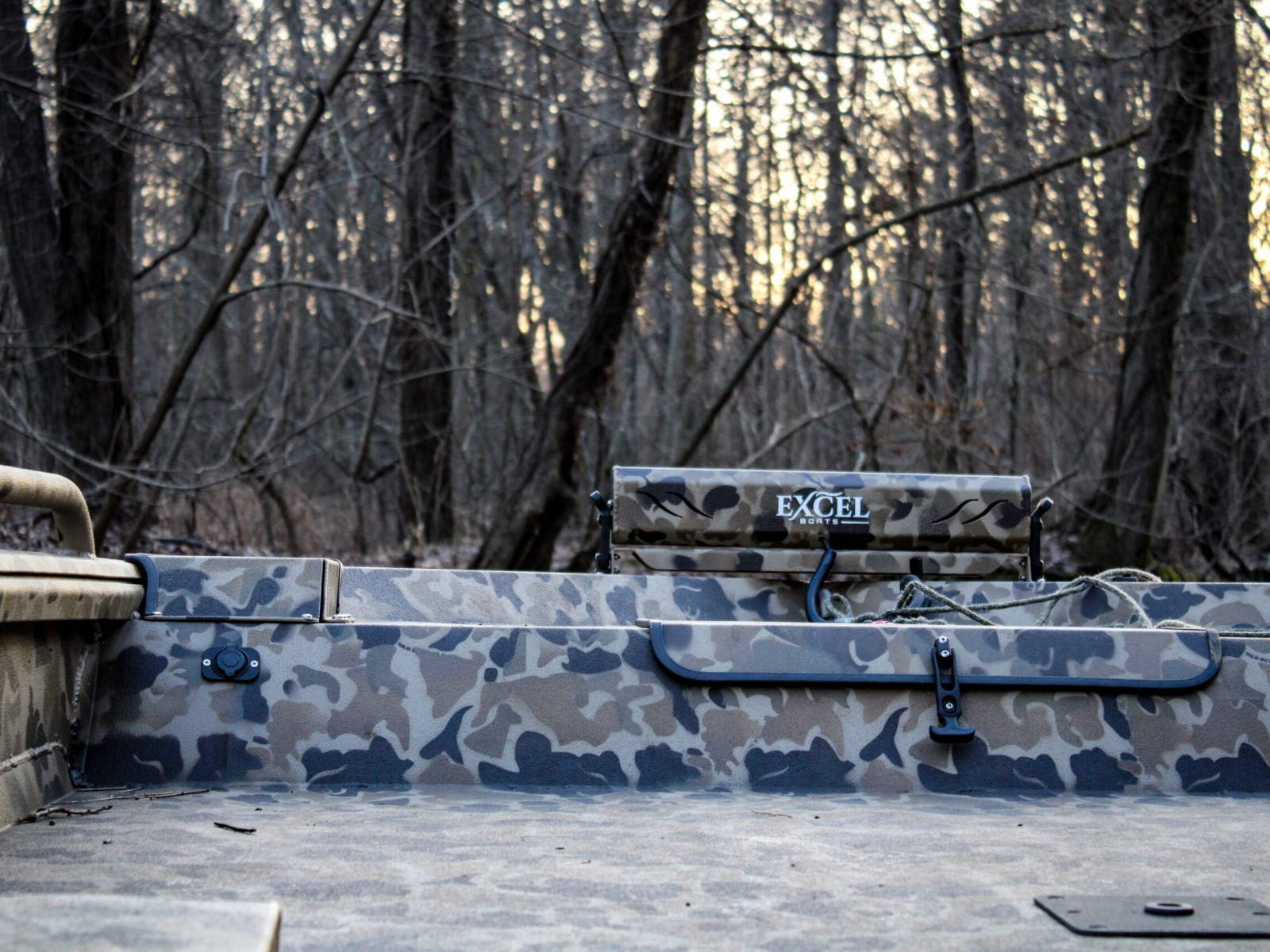 Gear up for limit-smashing success with the all-conquering Excel’s Viper Duck Boat 2072. Whether fishing on the river with your buddies or loaded full of decoys, dogs and gear; this boat does it all and has room for it all. The Viper™ runs on the water like a “train on its tracks” providing peace-of-mind on early morning runs. An optional 12 or 18 gallon fuel tank takes care of long runs or long days on the water. Standard .125 gauge aluminum. Heavy-duty gunwales are built to take a beating season-after-season. Standard dual gun boxes provide tons of dry storage and seating options.