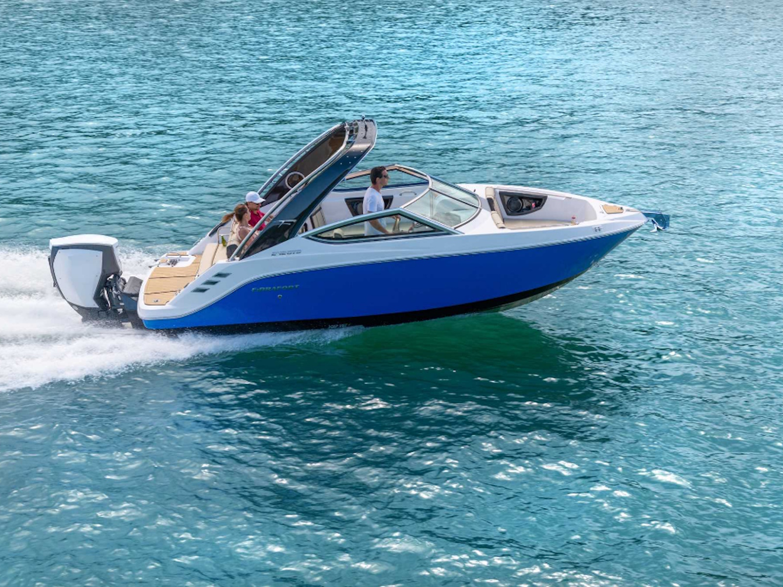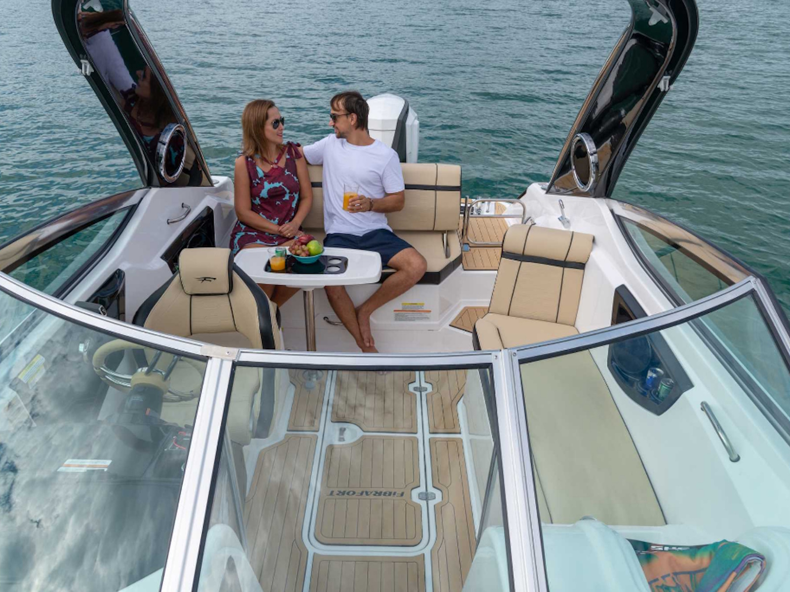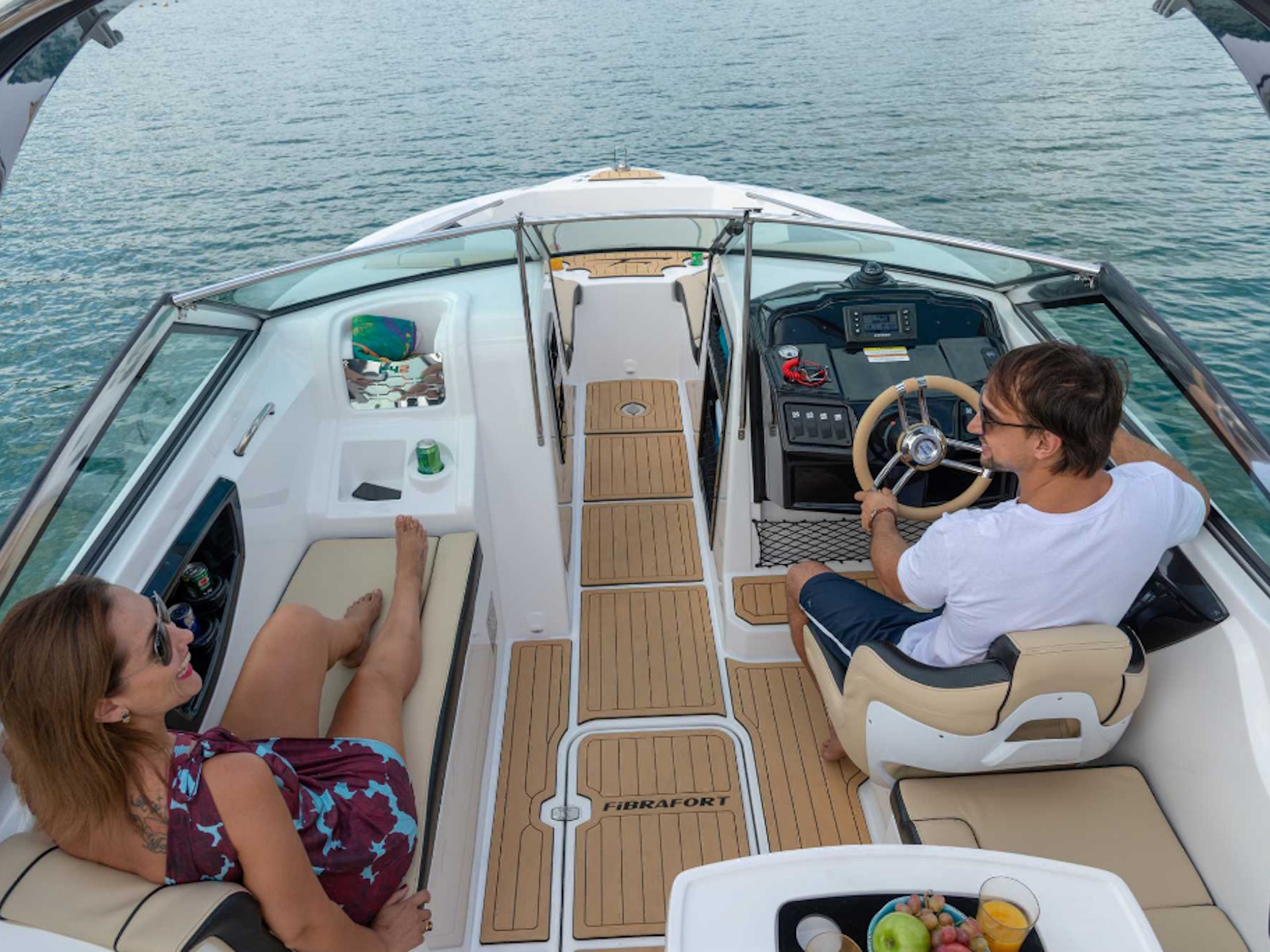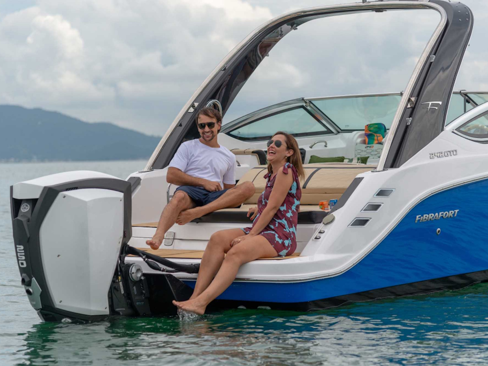 Fibrafort 242 GTO with the outboard motor option follows the global trend with an advantageous concept and has a significant differential: it completely preserves the space on the aft platform, maintaining the ideal space for leisure moments that occur in this area of the boat.