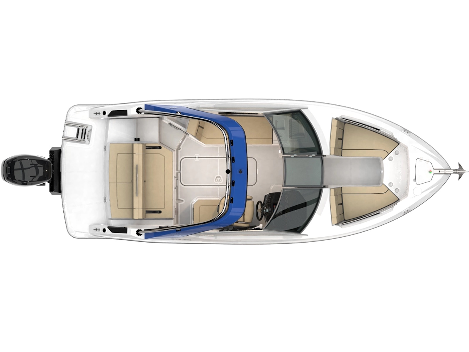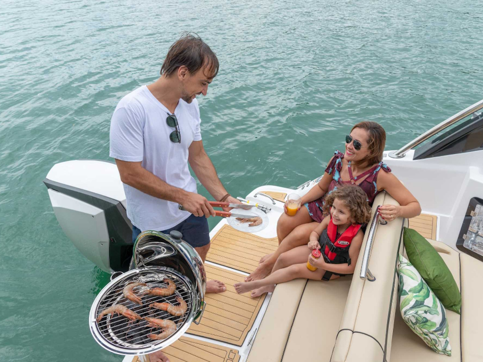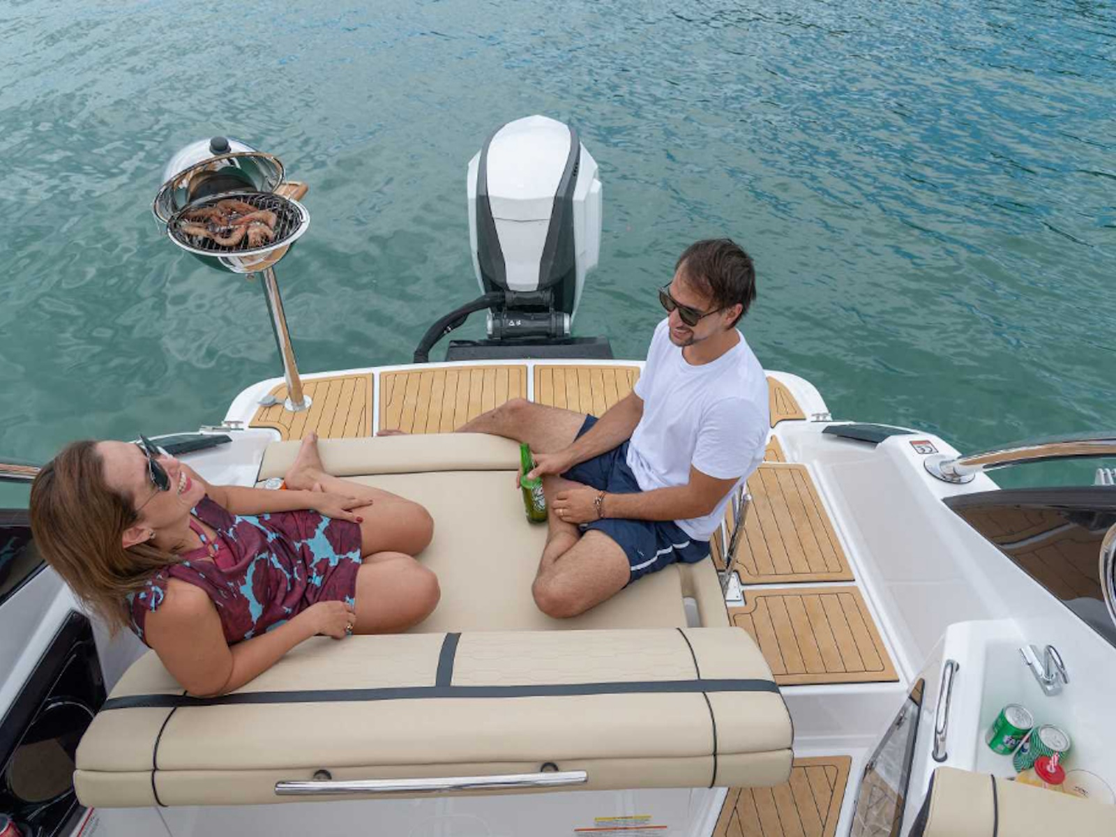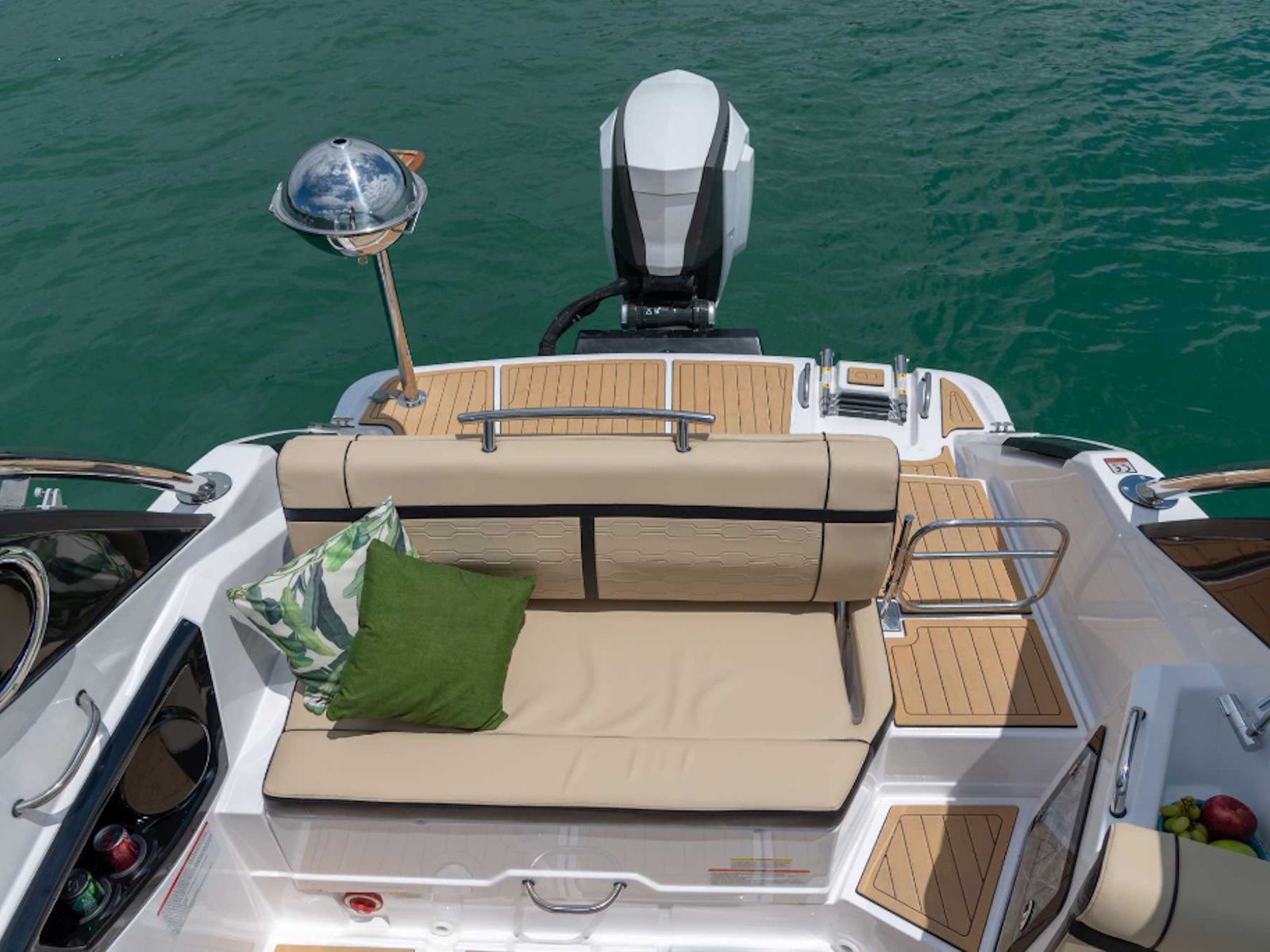 Fibrafort 242 GTO with the outboard motor option follows the global trend with an advantageous concept and has a significant differential: it completely preserves the space on the aft platform, maintaining the ideal space for leisure moments that occur in this area of the boat.
