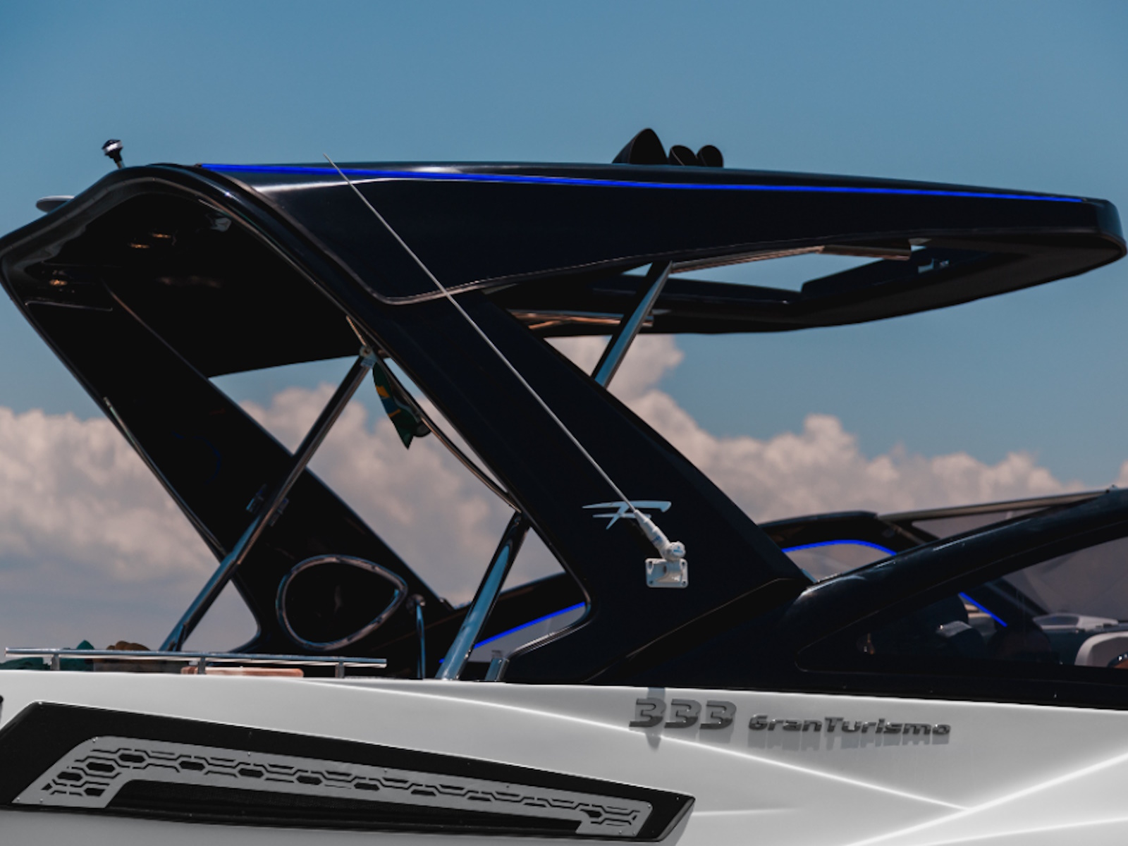 THE FIBRAFORT 333 GRAN TURISMO, COMMEMORATIVE EDITION OF 30 YEARS OF SHIPYARD, IS MARKED BY ITS IMPOSING AND SPORTIVE DESIGN, BRINGING AN EXCLUSIVE FINISH IN LED LIGHTS.