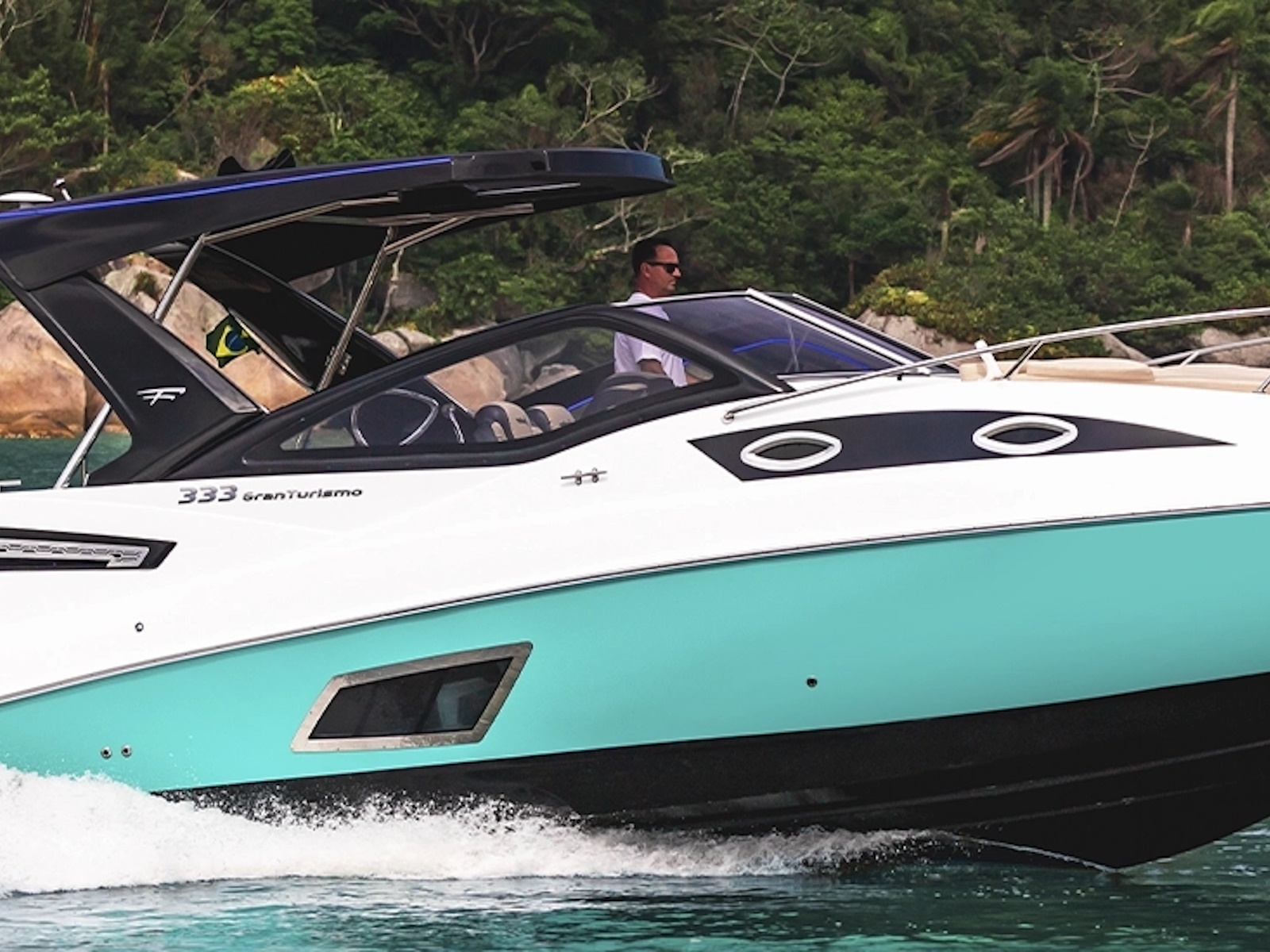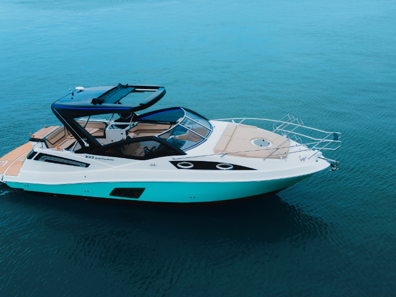 THE FIBRAFORT 333 GRAN TURISMO, COMMEMORATIVE EDITION OF 30 YEARS OF SHIPYARD, IS MARKED BY ITS IMPOSING AND SPORTIVE DESIGN, BRINGING AN EXCLUSIVE FINISH IN LED LIGHTS.