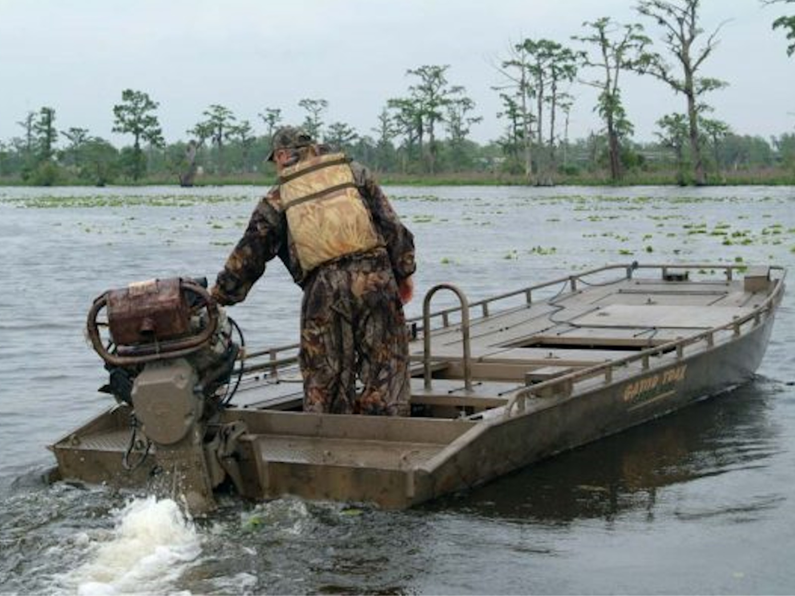 The Gator Hide is a true revolution in the way you will come to hunt 21st-century ducks. It offers the portability and versatility of a Gator Trax Boat, the stealth and deadliness of a layout blind, the comfort of a recliner, and the ability to hide up to 4 hunters, gear, and a dog.
