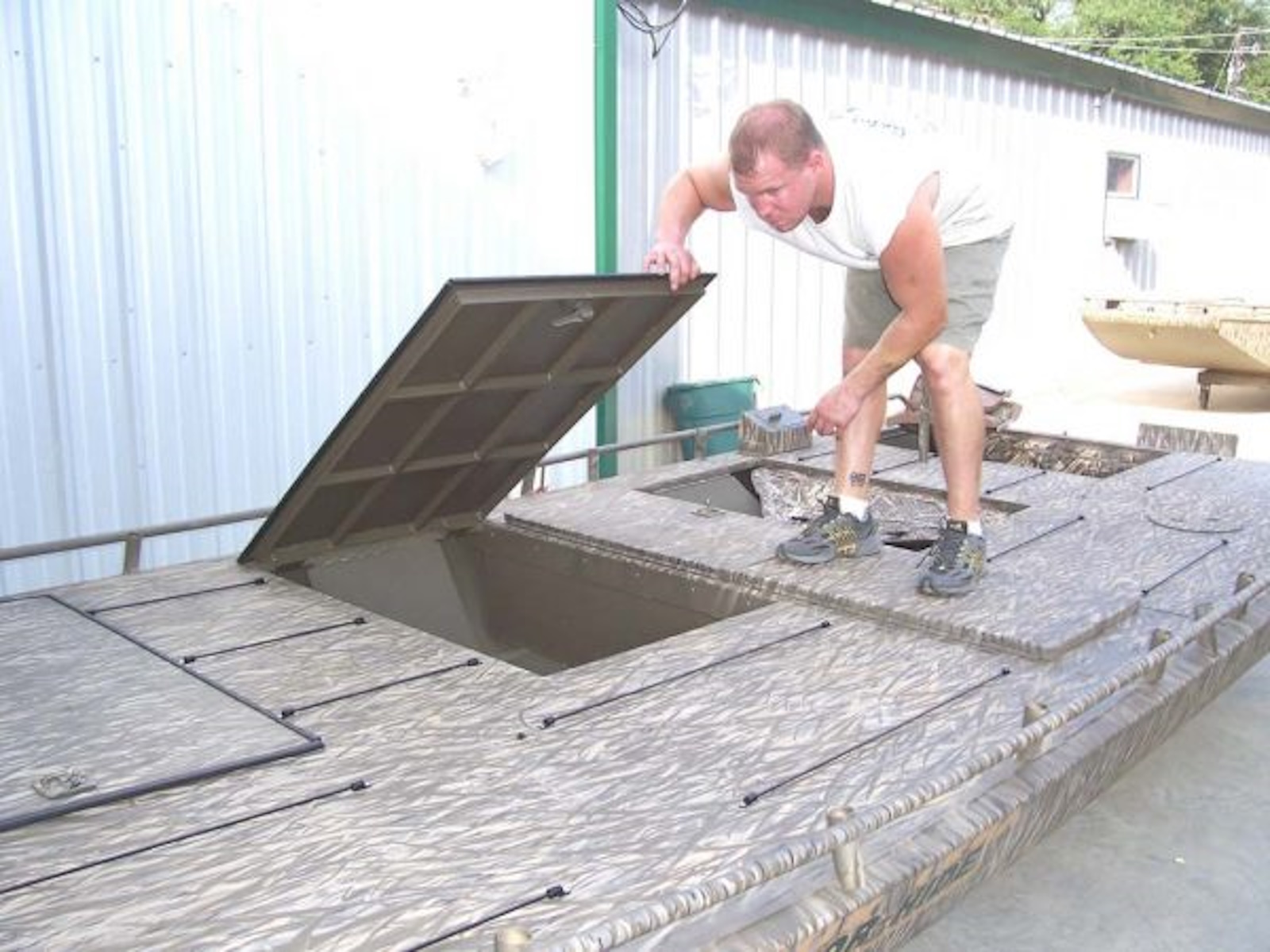 The Gator Hide is a true revolution in the way you will come to hunt 21st-century ducks. It offers the portability and versatility of a Gator Trax Boat, the stealth and deadliness of a layout blind, the comfort of a recliner, and the ability to hide up to 4 hunters, gear, and a dog.