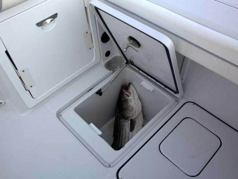- insulated 100-quart port and starboard floor fish boxes with diaphragm pumps
