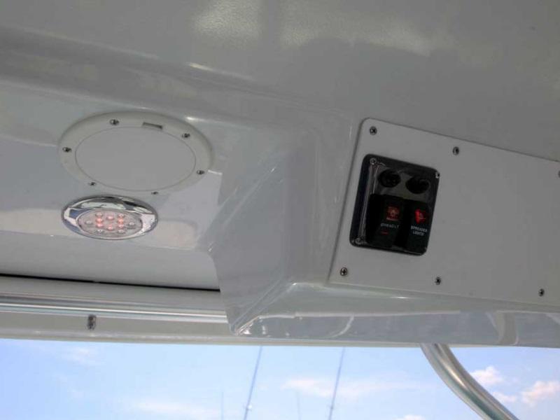 - Port and starboard deck caps with rod and gaff storage for 6 rods