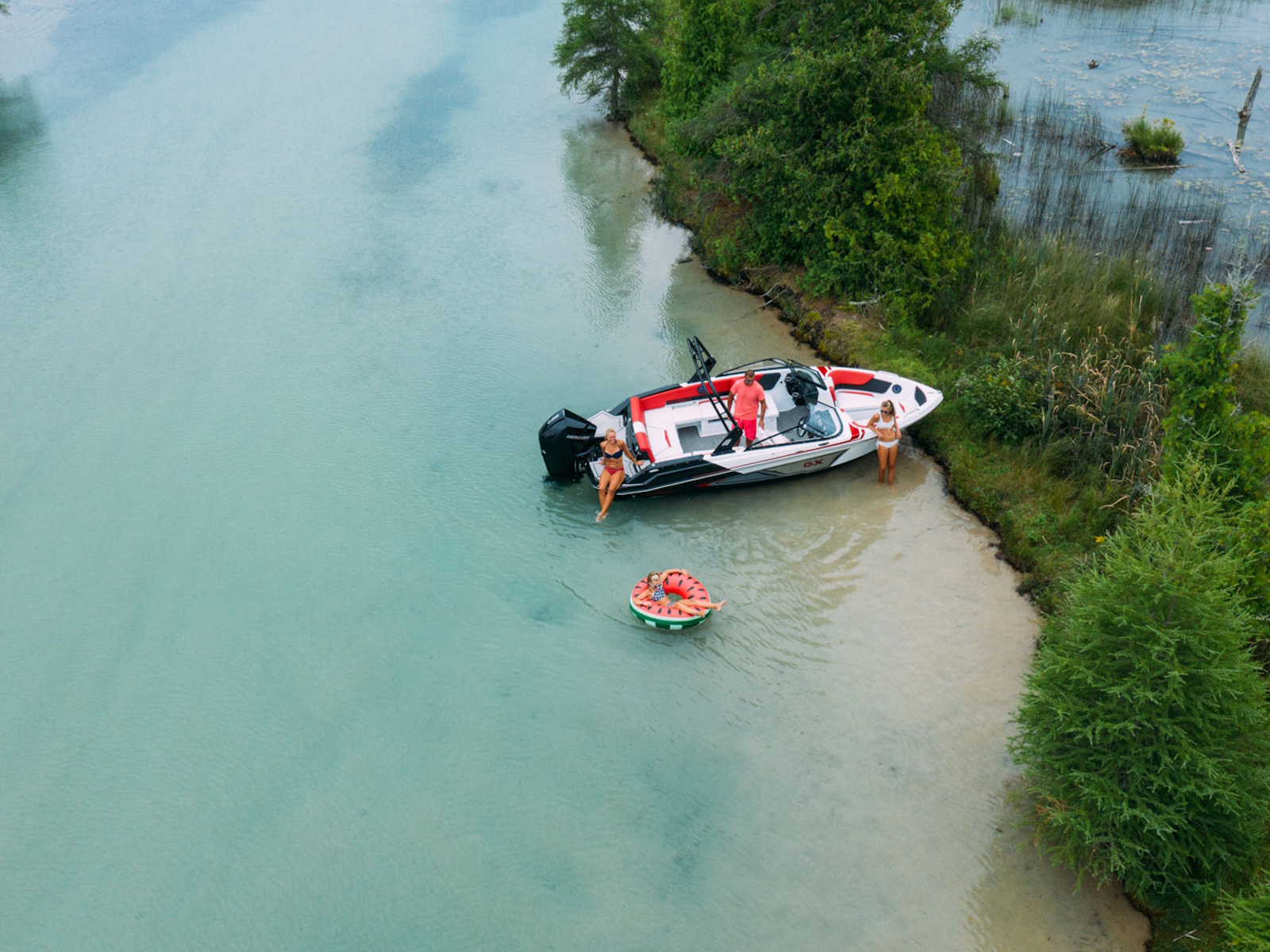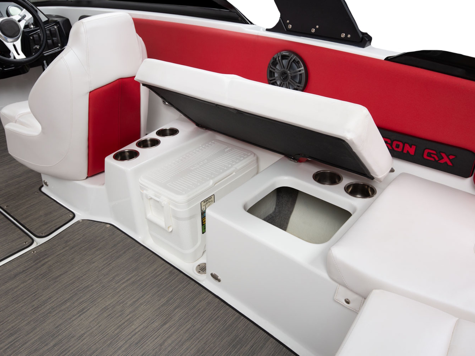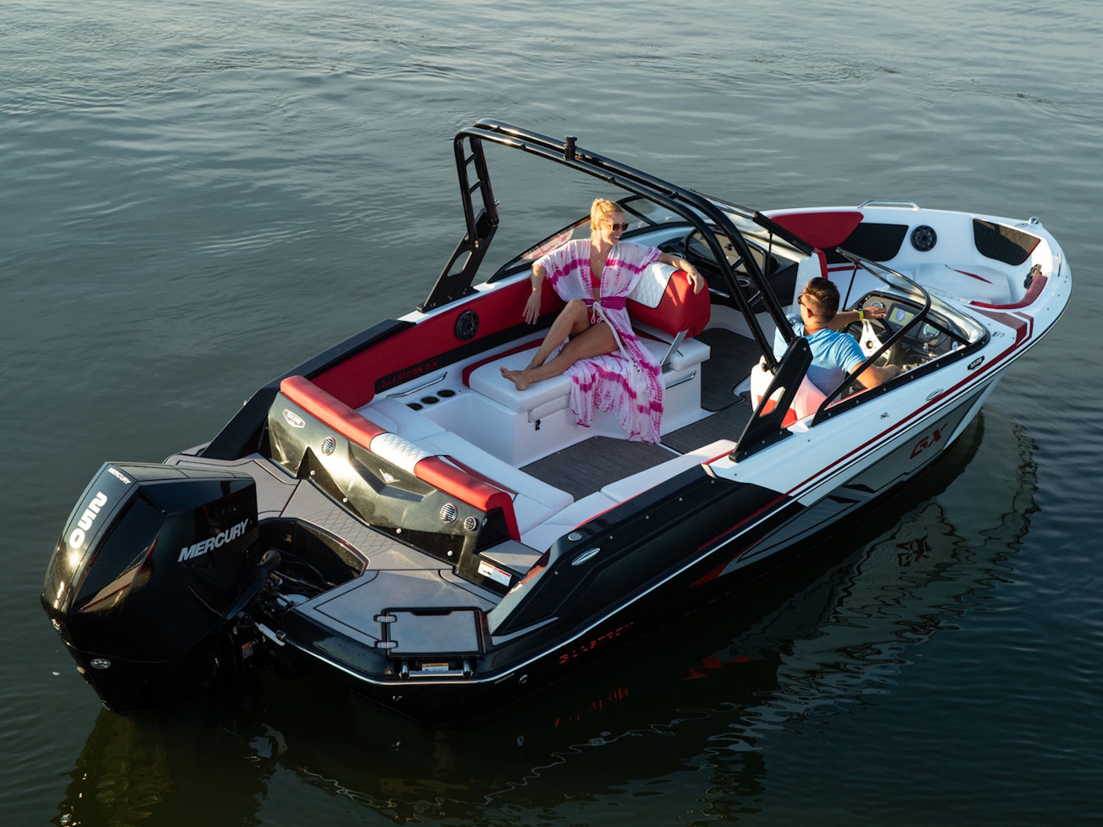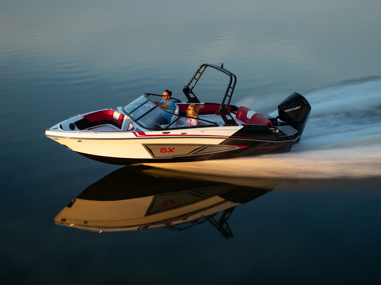 The GX 210 Sport boasts a wide beam, spacious cockpit, and full-width swim platform standard with swim mat. Add the Z-shaped tower and the premium sound package with RGB lighting, and you've got a #GlastronSummer.