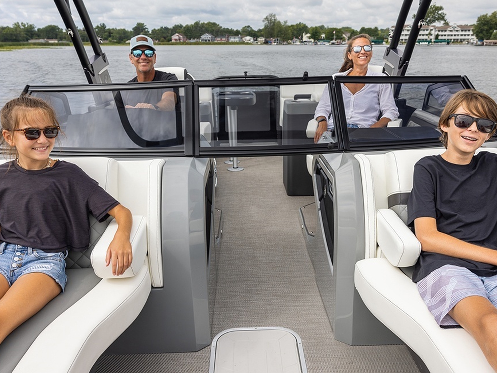 - Enjoy every moment with your favorite people on one of our AquaPatio Windshield models. Keeping you dry and comfortable, our aerodynamic windshield is a fan favorite. Available in 23 to 25 foot lengths.