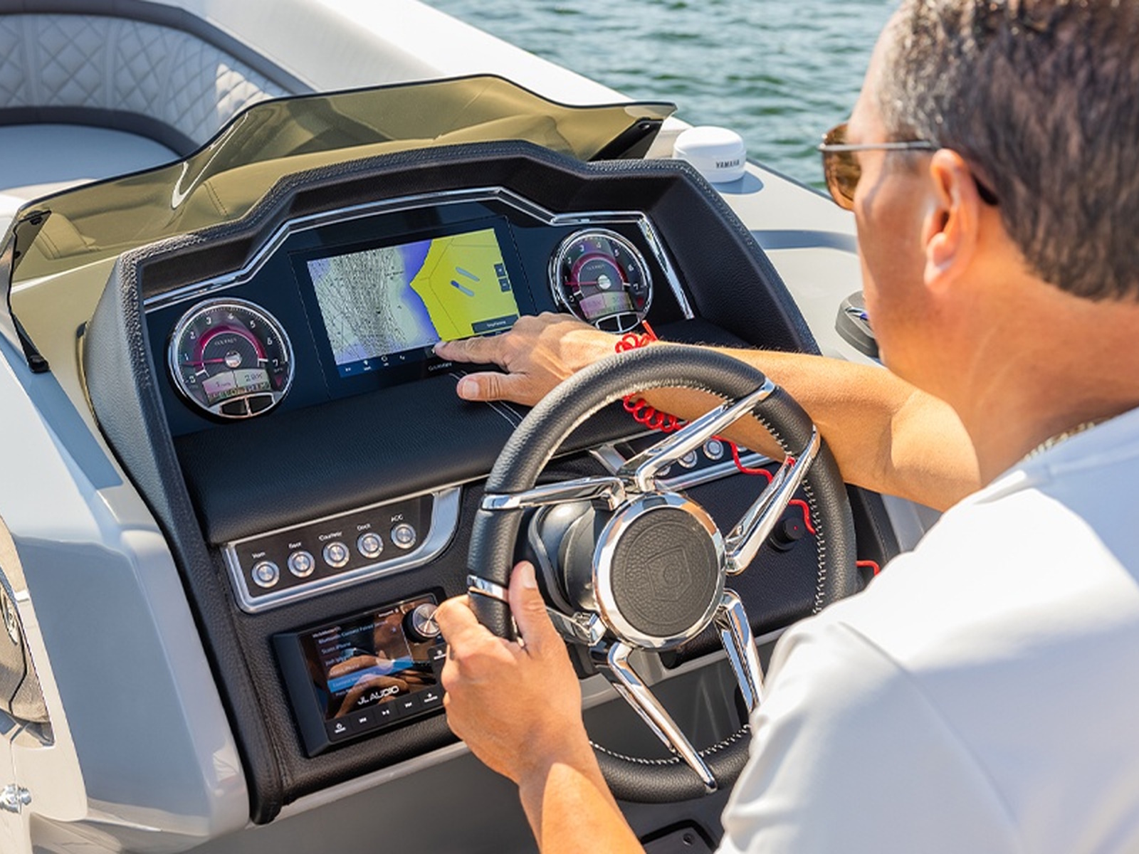 • The optional joystick control takes the stress out of docking, giving you precise, effortless maneuverability even in tight spaces. Whether you're pulling into the marina or navigating a crowded cove, it’s smooth control at your fingertips.