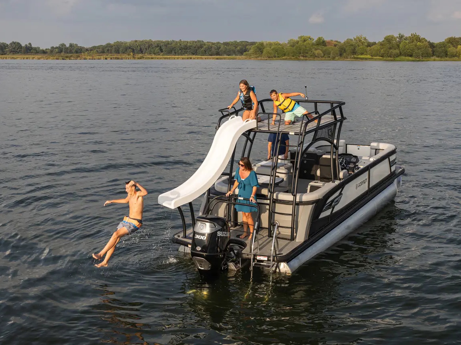 AquaPatio delivers standout style, smooth performance, and smart features, all in a wide range of layouts and lengths to fit how you boat. Positioned just above mid-range in our lineup, it’s the perfect choice for those who want more comfort, more options, and more fun.