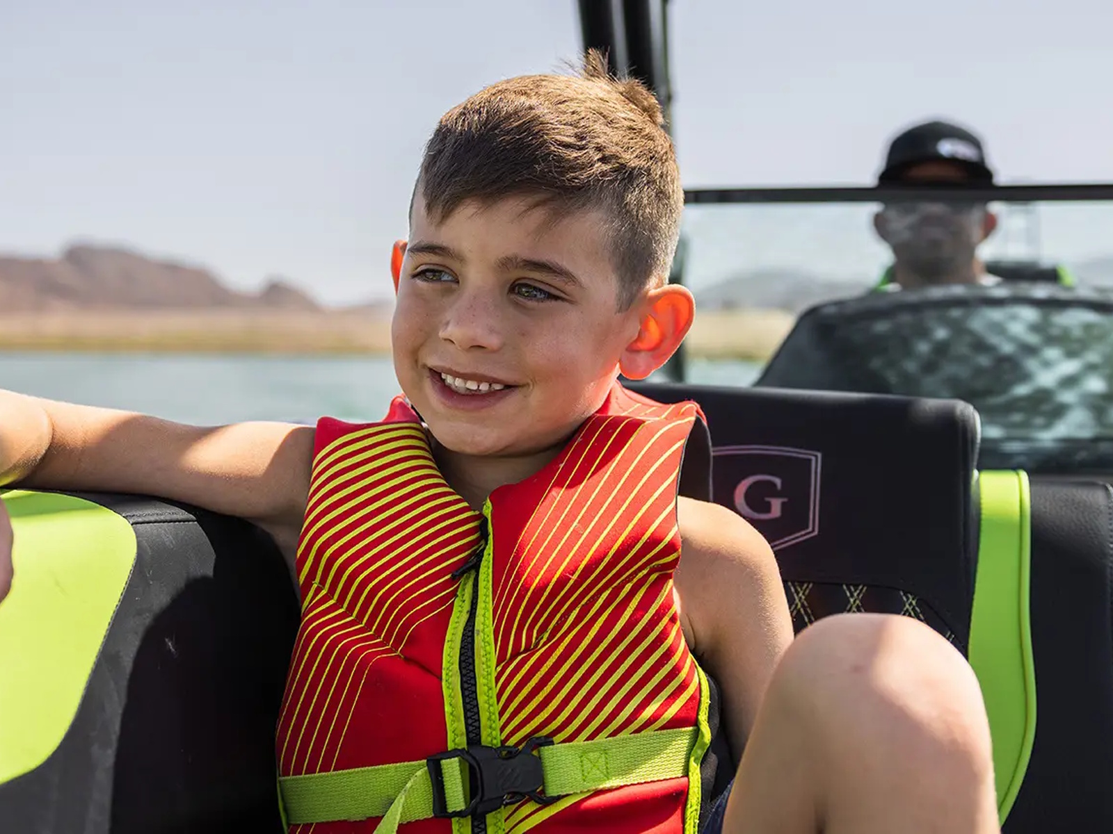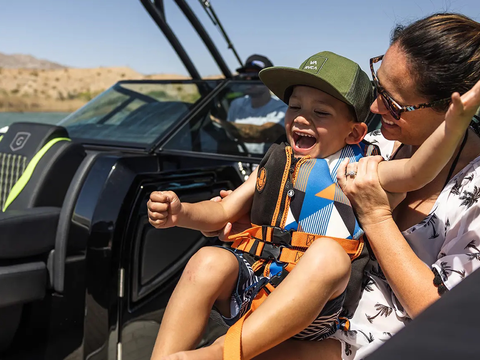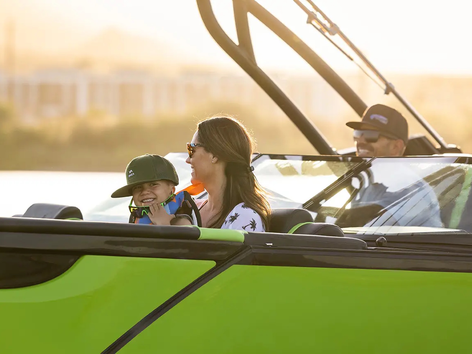 The XP’s helm puts all your boat controls  at your fingertips—12" display, intuitive controls, and a cooled cupholder—so you can effortlessly captain the day.